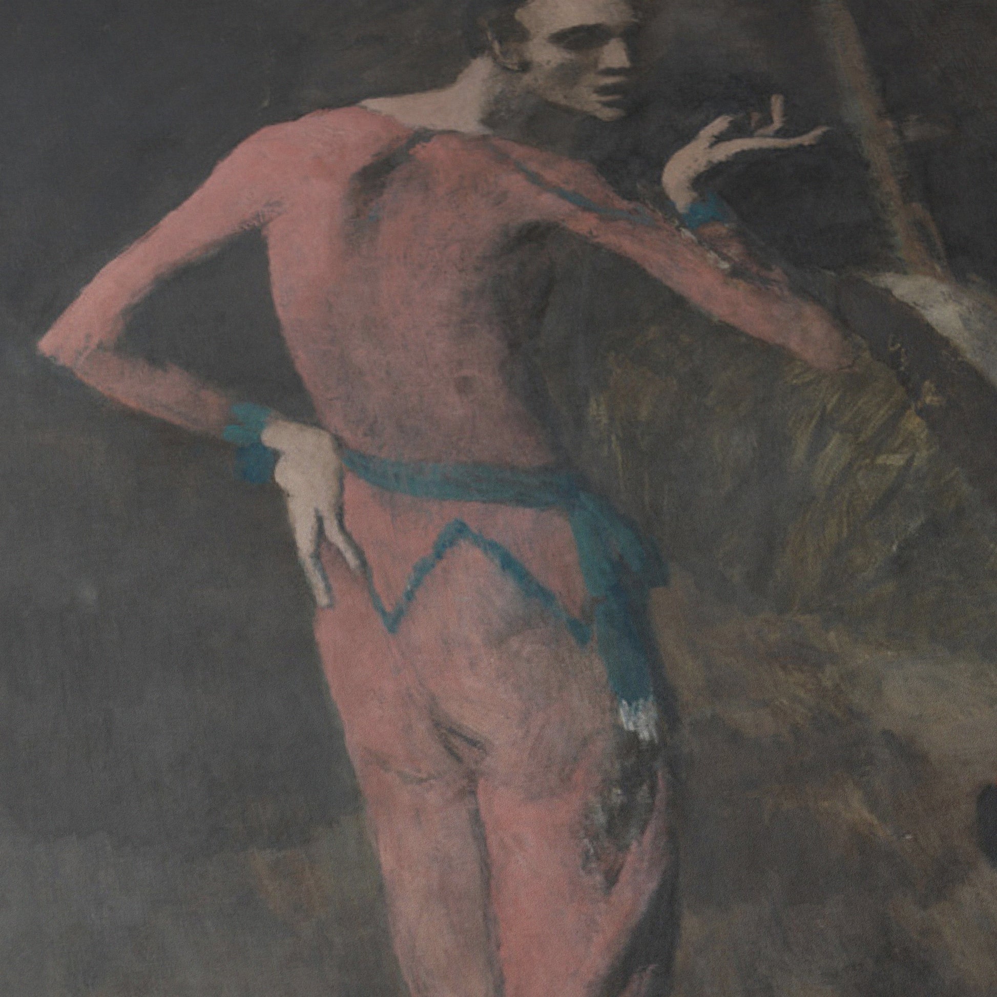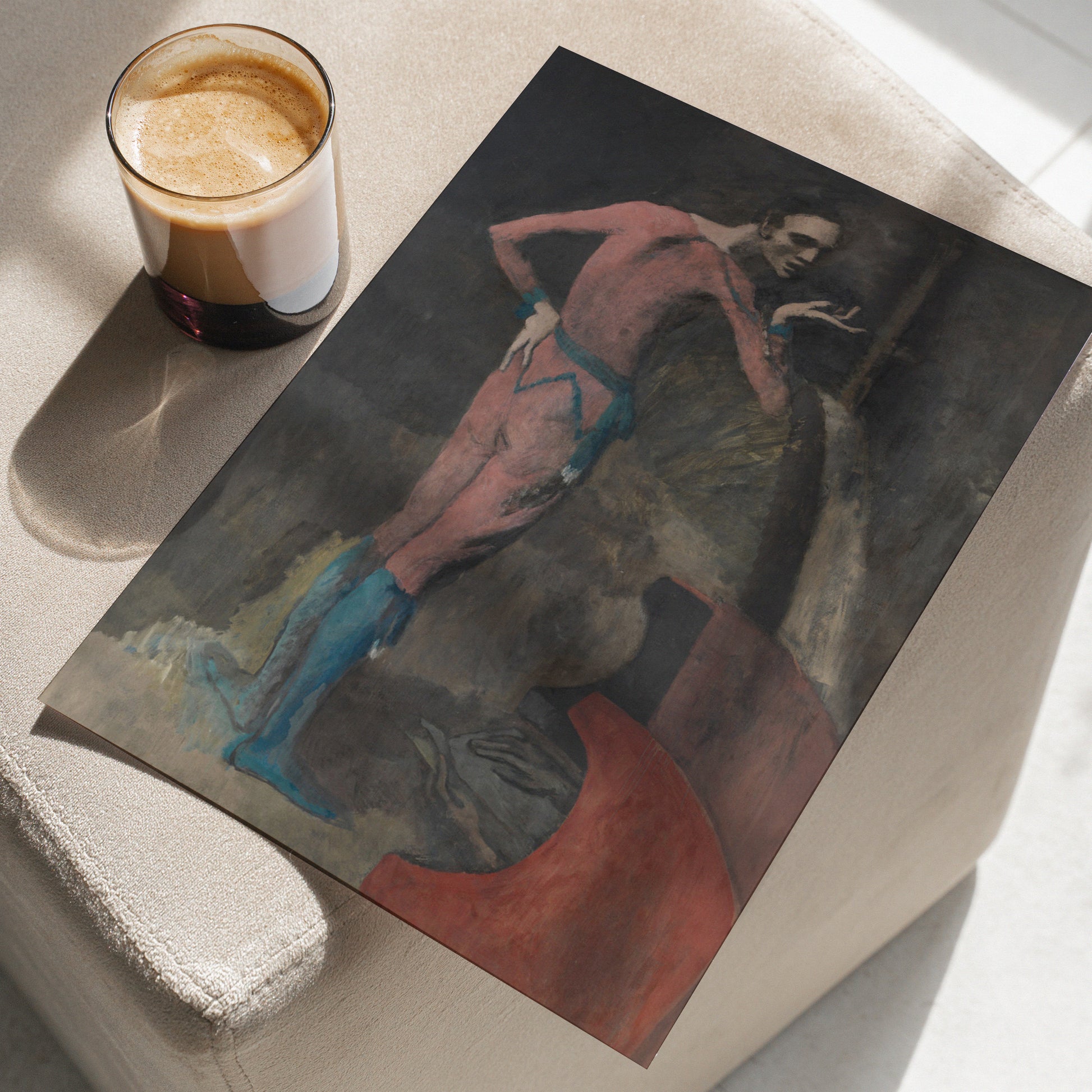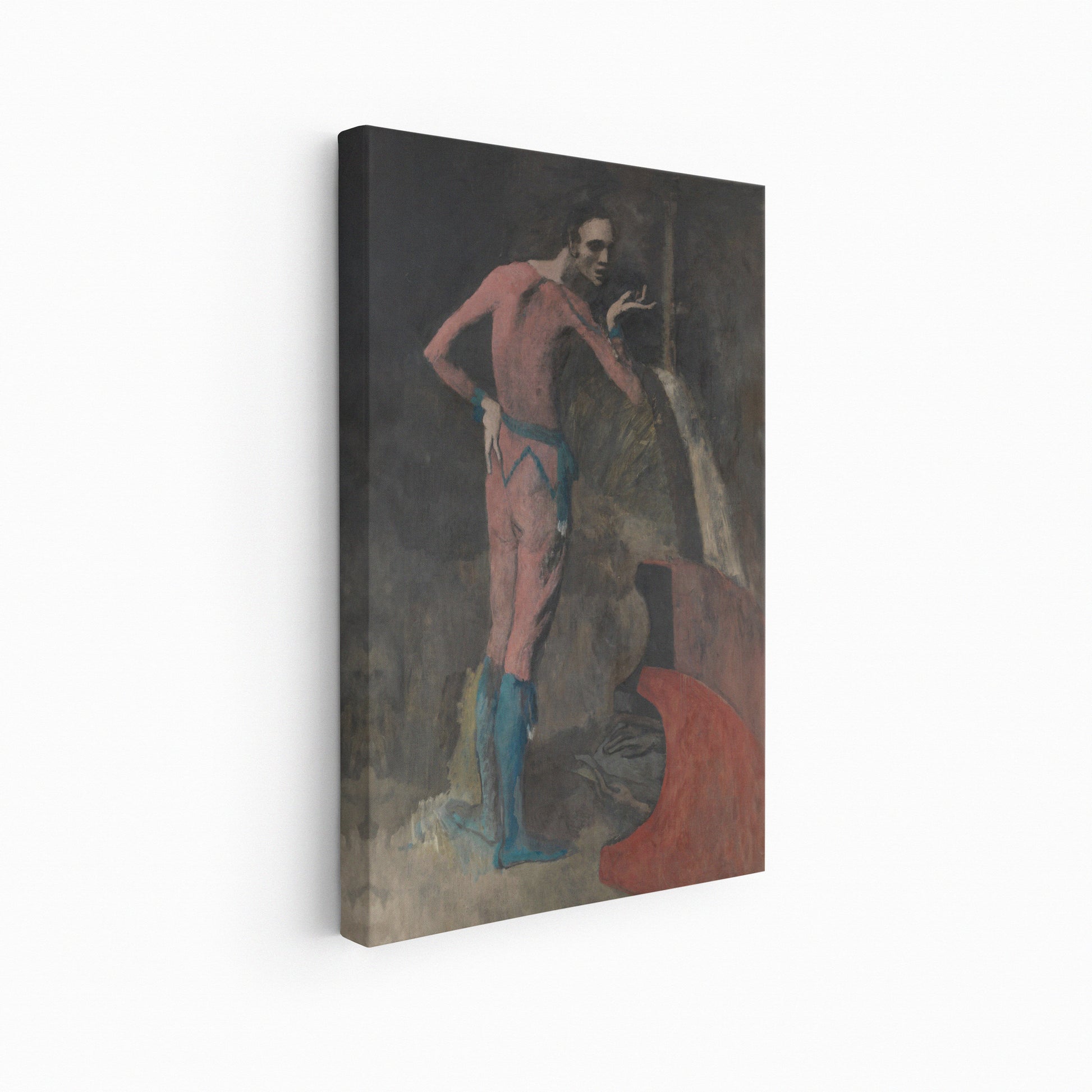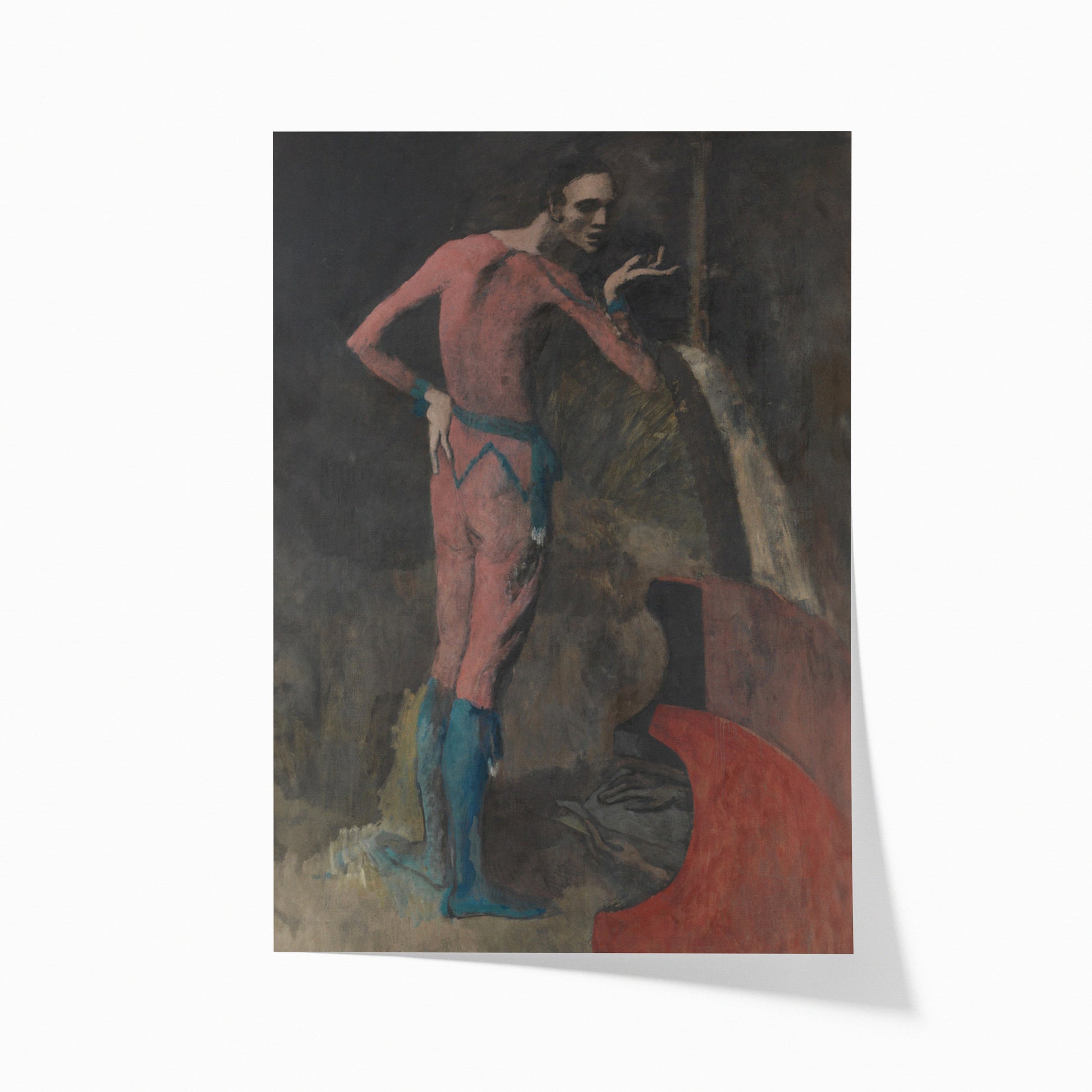 "Actor" by Pablo Picasso, created in 1904, is a striking and innovative portrait that exemplifies the artist's early exploration of Cubism. In this groundbreaking work, Picasso presents the figure of an actor in a fragmented and geometric style, with sharp angles and bold lines defining the form. The actor's features are distorted and rearranged, conveying a sense of movement and energy. Picasso's use of color is bold and expressive, with vibrant hues that add to the dynamism of the composition. The painting is a study in the deconstruction of form and the representation of multiple viewpoints simultaneously. "Actor" is a seminal work in the development of Cubism, marking Picasso's departure from traditional modes of representation and his embrace of a new visual language. Through this innovative portrait, Picasso invites viewers to engage with the complexities of perception and the ever-shifting nature of reality.