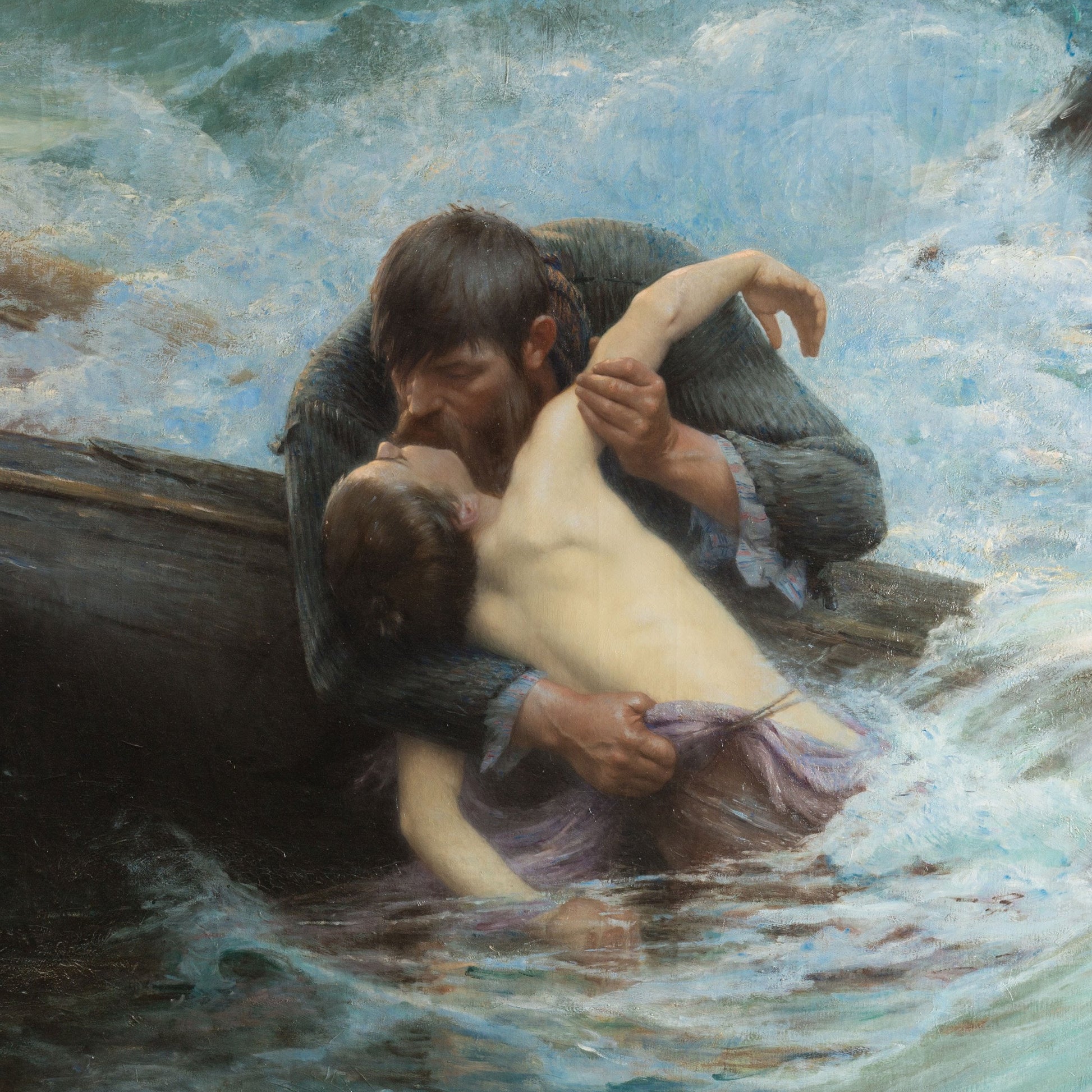 Adieu! by Alfred Guillou (1892) captures the emotional gravity of departure in a small Breton fishing village—a poignant farewell between a fisherman and his loved ones before he sets sail, possibly for the last time. Guillou, known for his deep connection to the people of Brittany, translates local life into a universal meditation on love, loss, and the uncertainty of the sea. The restrained palette of grays and blues envelops the scene in melancholy, while the figures’ gestures—tender yet resigned—convey a silent narrative of duty versus affection. Through its realism and emotional sincerity, the painting becomes not just a scene of farewell, but a timeless reflection on human fragility and the sacrifices demanded by life’s unrelenting tides.