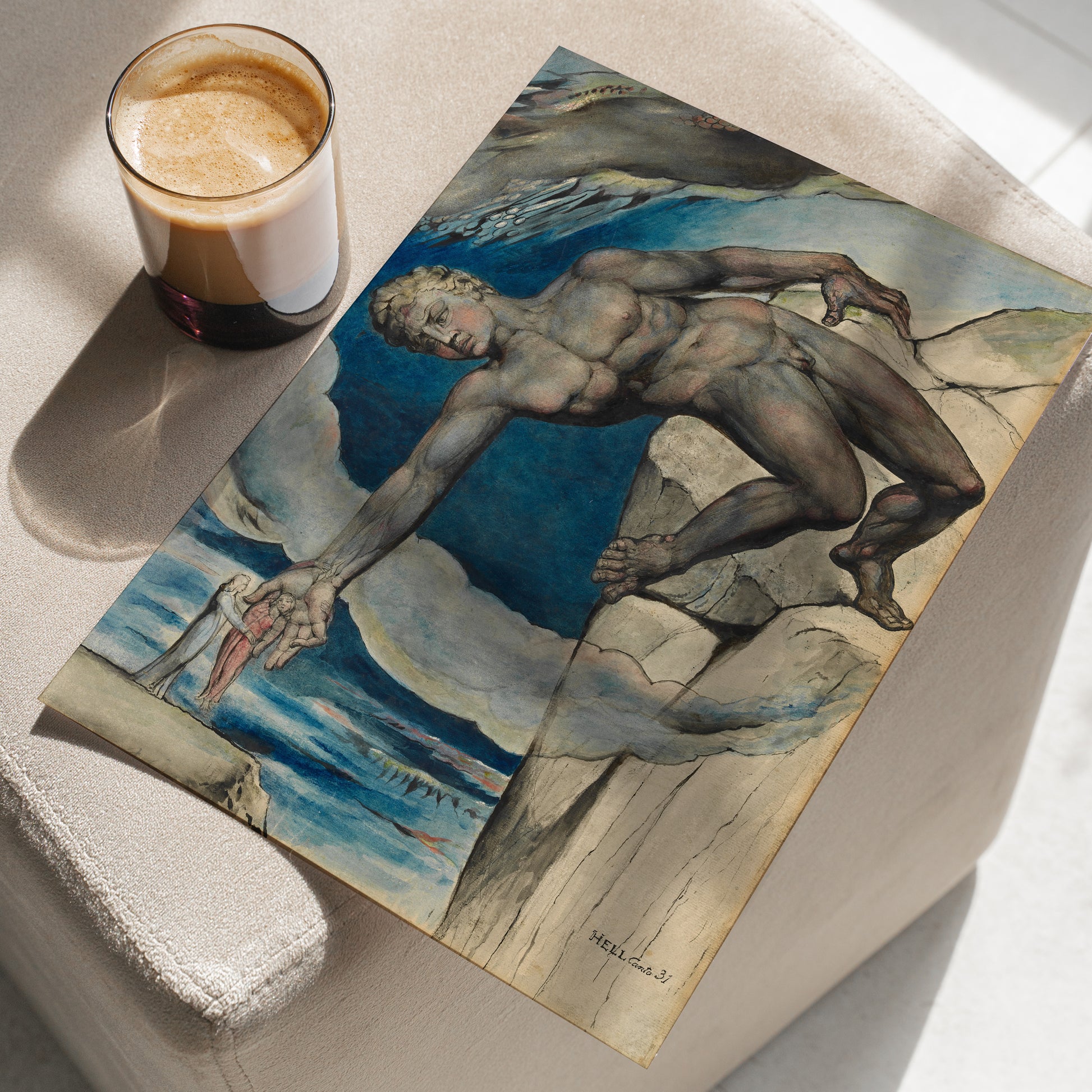 William Blake was a visionary artist, poet, and printmaker whose work defied the conventions of his time and continues to resonate for its deeply symbolic and otherworldly qualities. A Romantic in spirit, Blake rejected materialism and rationalism, instead embracing a mystical worldview that celebrated imagination as the ultimate creative force. His illuminated manuscripts, such as Songs of Innocence and Experience, blend poetry with intricate, hand-colored illustrations, creating a unique synthesis of word and image. Blake's art often delves into profound themes of spirituality, morality, and human suffering, as exemplified in his striking depictions of biblical and mythical figures, such as Urizen, the embodiment of restrictive reason. Although dismissed during his lifetime as eccentric or even mad, Blake’s prophetic voice and innovative artistry have established him as a seminal figure in the Romantic movement and an enduring icon of artistic freedom and individuality.