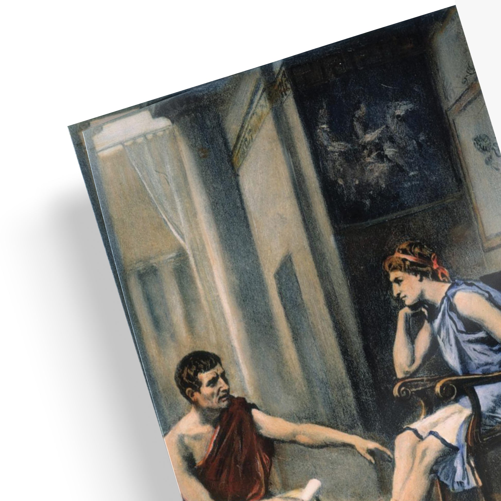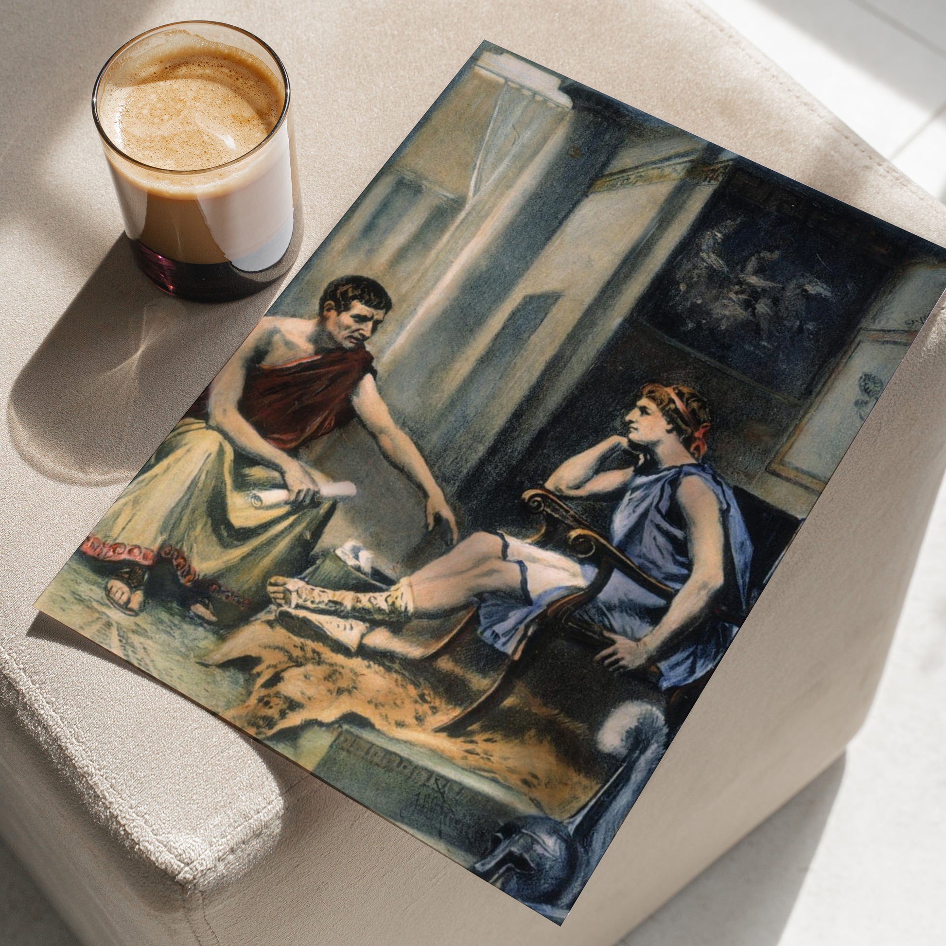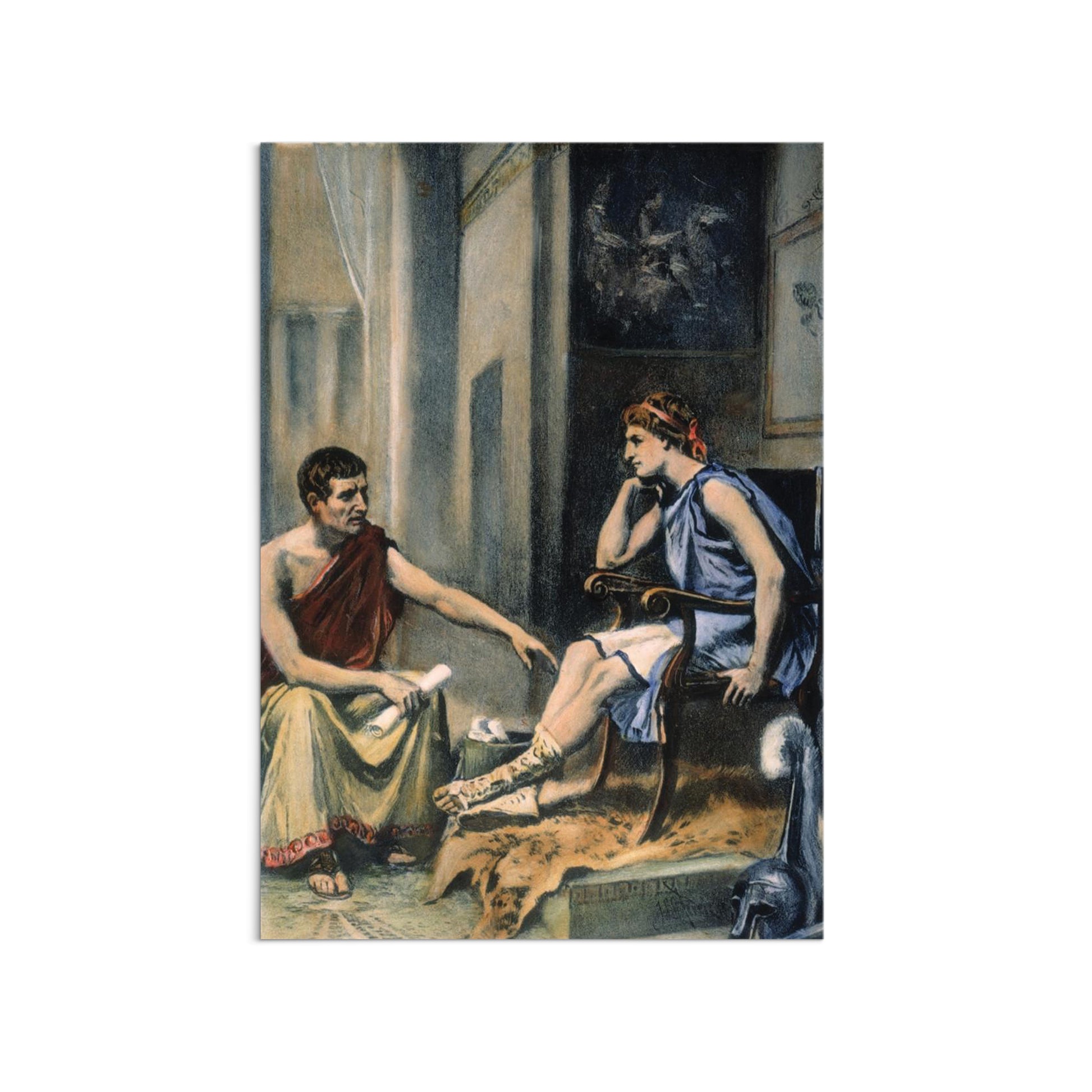 "Aristotle tutoring Alexander the Great" by Jean Leon Gerome Ferris depicts a pivotal moment in the life of the young Alexander as he receives instruction from the renowned philosopher Aristotle. Ferris captures the scene with a sense of reverence and intellectual curiosity, portraying Alexander as a receptive student eager to absorb the wisdom of his mentor. The painting exudes a quiet intensity, as Aristotle imparts his knowledge while Alexander listens attentively, surrounded by scrolls and scholarly artifacts. Through his meticulous attention to detail and expressive brushwork, Ferris evokes the rich intellectual tradition of ancient Greece, highlighting the profound influence of philosophy on Alexander's worldview and leadership style. "Aristotle tutoring Alexander the Great" stands as a poignant reminder of the transformative power of education and mentorship in shaping the destiny of great leaders.