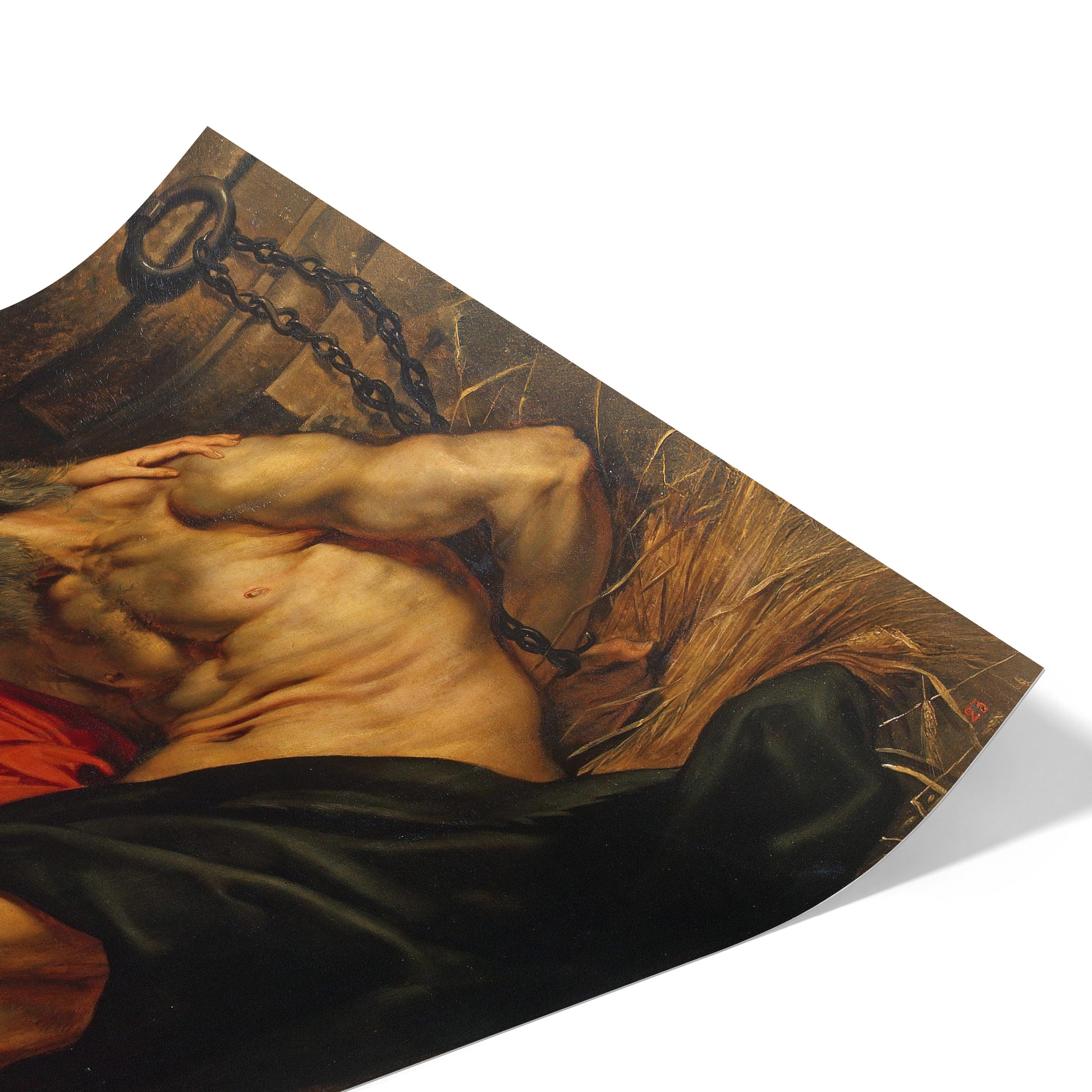 Peter Paul Rubens’ Cimon and Pero (c. 1612) dramatizes the ancient Roman tale of filial piety, where the imprisoned old man Cimon is secretly kept alive by the selfless act of his daughter Pero, who nurses him at her own breast. Rubens heightens the tension of the scene through his typically dynamic composition and voluptuous handling of flesh, contrasting the frailty of the starving father with the youthful vitality of the daughter. The intimate and morally charged act is depicted with both tenderness and sensuality, a duality characteristic of Rubens’ ability to merge the sacred with the corporeal. Light falls directly on Pero, casting her as both savior and moral exemplar, while the darker tones surrounding Cimon emphasize his vulnerability and dependence. In Rubens’ hands, this episode becomes not only a story of survival and familial devotion but also an exploration of themes of sacrifice, love, and the complex intersections of necessity and taboo.