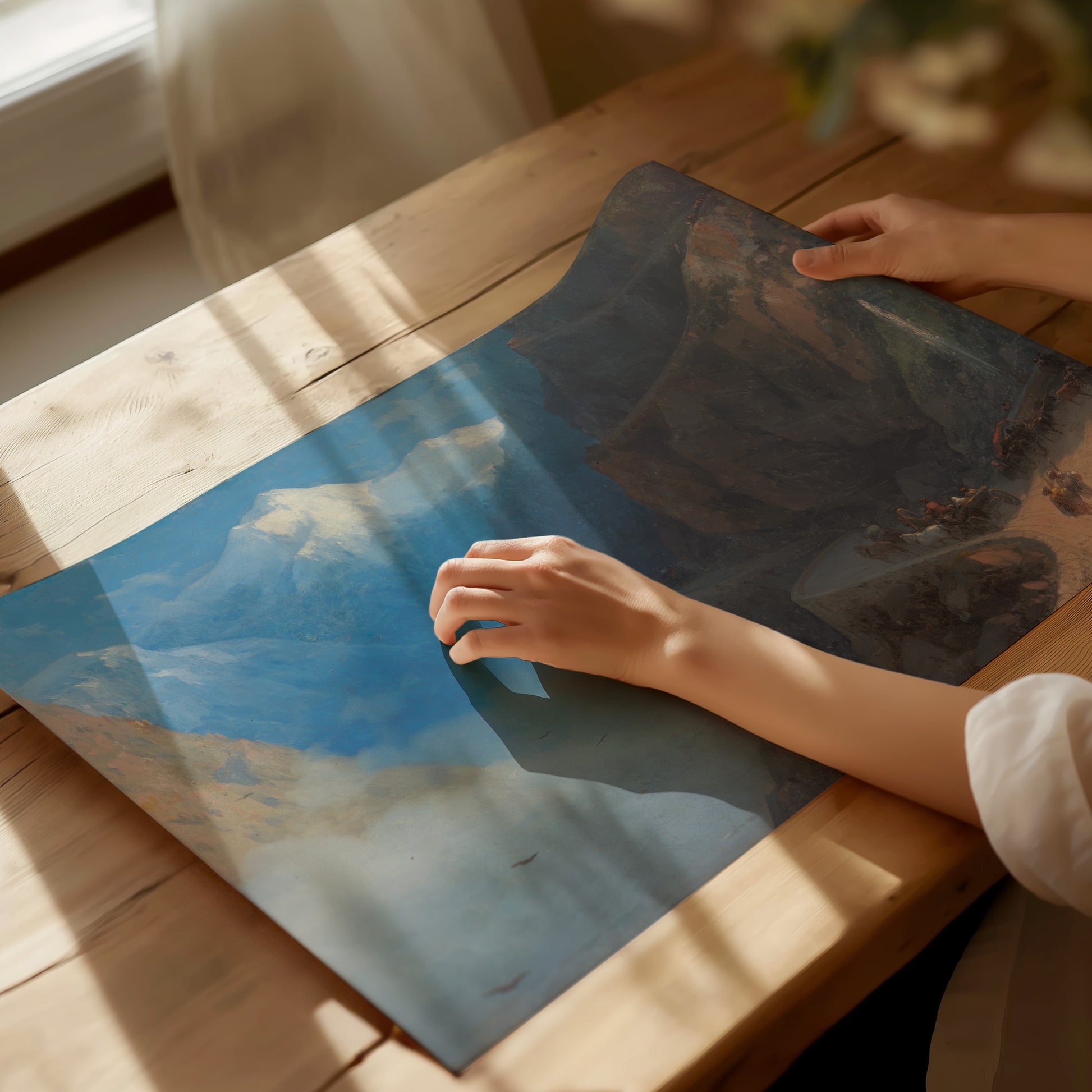 Ivan Aivazovsky, a master of Romantic seascapes, is renowned for his breathtaking depictions of the sea's dynamic and emotive power. Born in 1817 in Feodosia, Crimea, his works often explore the interplay of light and water, capturing the sublime and transient nature of maritime landscapes. Aivazovsky's technical mastery is evident in his ability to render intricate details of waves, storms, and shipwrecks, while his use of dramatic contrasts between light and shadow evokes an ethereal, almost otherworldly quality. Paintings like "The Ninth Wave" embody the Romantic ideals of human vulnerability against the immense forces of nature, while simultaneously offering glimmers of hope and resilience. His prolific career produced over 6,000 works, solidifying his reputation as one of the greatest marine painters in art history, whose influence resonates in both European and Russian art traditions.