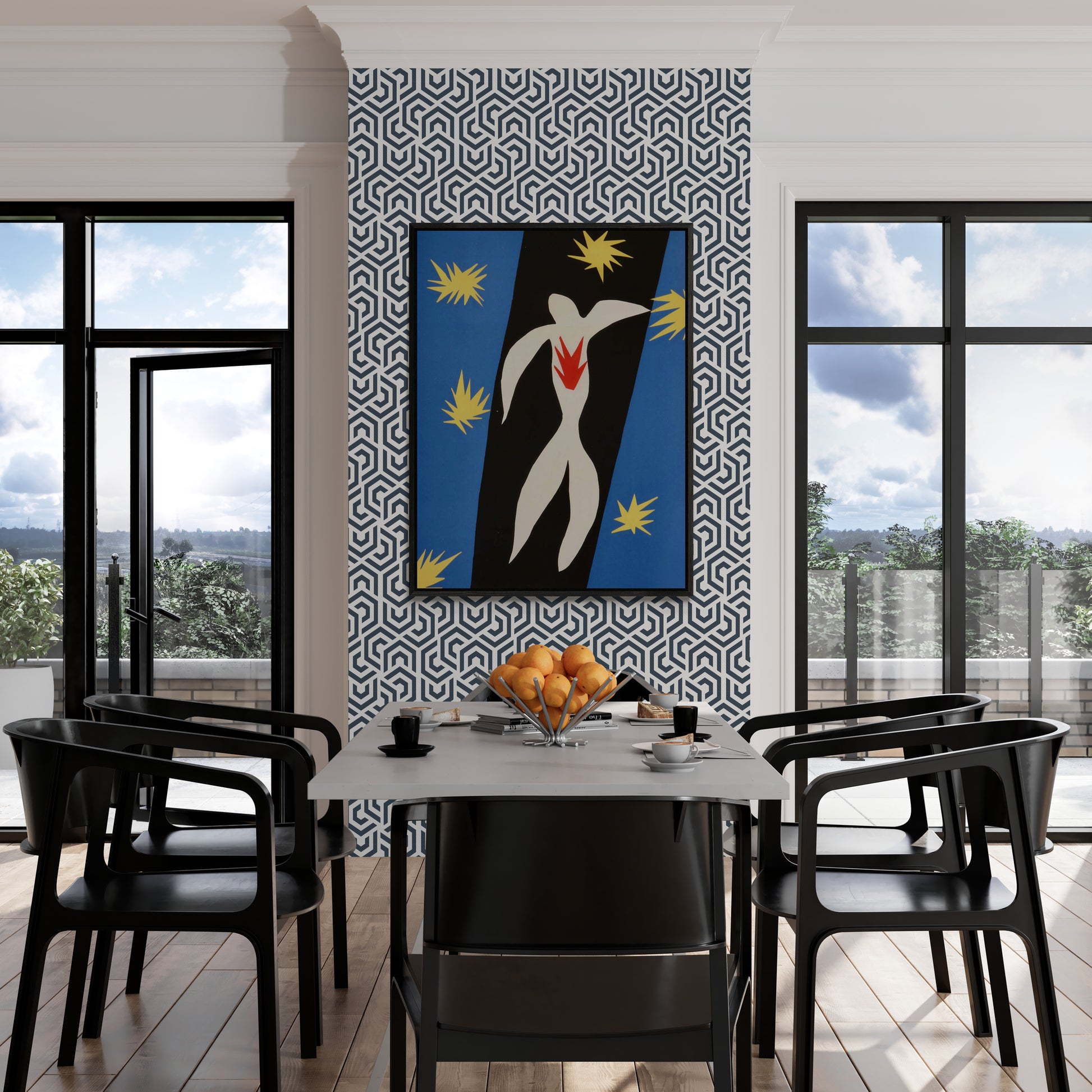 "Icarus II" by Henri Matisse, painted in 1944, is a captivating exploration of the myth of Icarus, the figure from Greek mythology who famously flew too close to the sun. In this painting, Matisse presents a dynamic composition featuring bold colors and abstract forms that convey a sense of movement and energy. The central figure of Icarus is depicted with sweeping lines and vibrant hues, suggesting his flight through the sky. Matisse's use of color and form creates a striking visual impact, capturing the drama and excitement of the mythological narrative. Through "Icarus II," Matisse invites viewers to contemplate themes of ambition, risk-taking, and the consequences of hubris, while showcasing his innovative approach to composition and expression.