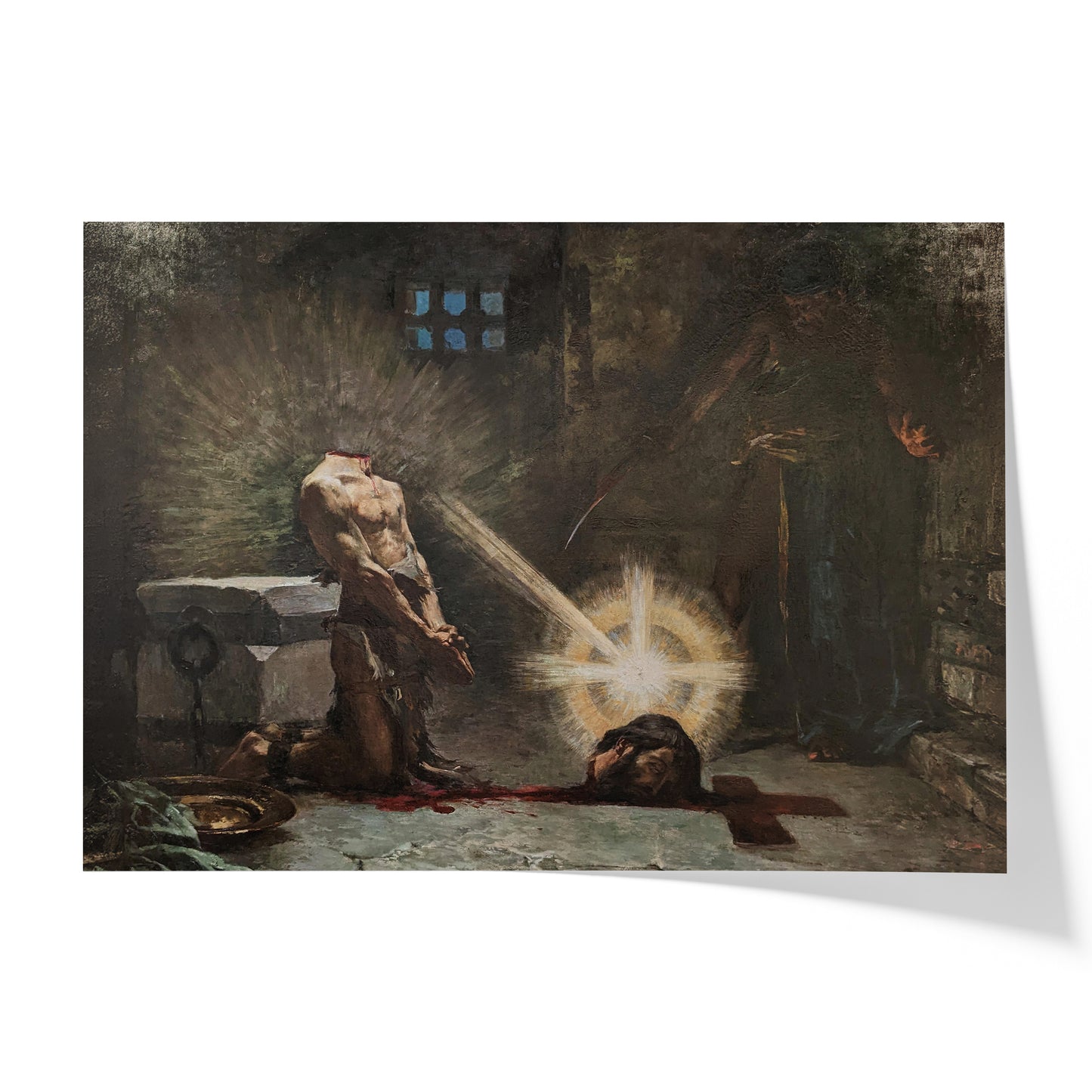 "Le Précurseur" by Eugène Trigoulet, painted in 1894, captures the dramatic and poignant moment of the beheading of John the Baptist. This work delves into the intense emotions and dark themes surrounding the biblical event, with the figure of John the Baptist portrayed with solemn dignity. The detailed and somber rendering of the scene highlights the gravity and brutality of the act, while also reflecting on themes of martyrdom and sacrifice. Trigoulet's composition and use of light and shadow enhance the painting's emotional impact, making it a compelling and thought-provoking piece.