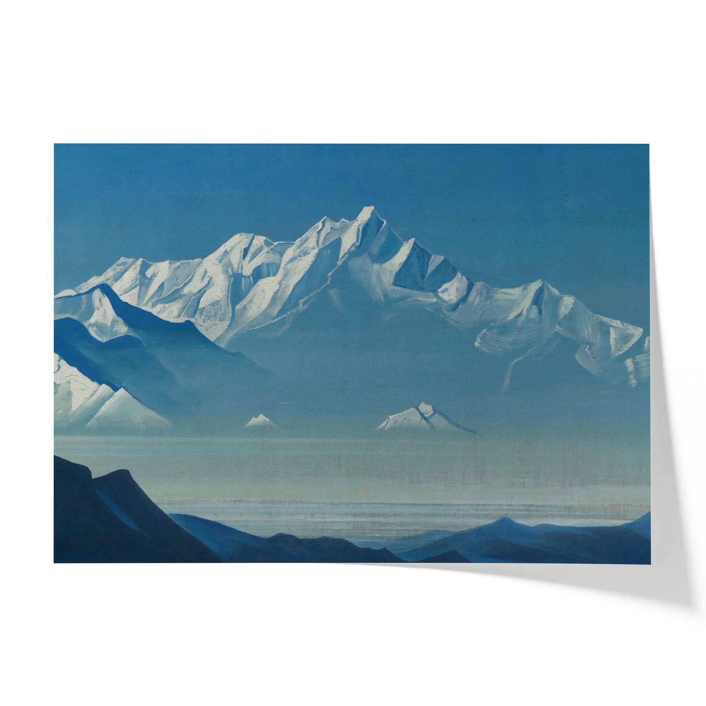 Nicholas Roerich's Mount of Five Treasures (1933) is a striking depiction of a sacred Himalayan peak, likely inspired by Kangchenjunga, which in Tibetan tradition symbolizes five repositories of divine wealth—gold, silver, gems, grain, and sacred texts. Roerich’s signature use of luminous, layered colors creates a mystical atmosphere, with the mountain bathed in ethereal pinks, purples, and blues that evoke both spiritual transcendence and the awe-inspiring power of nature. The painting reflects Roerich’s deep fascination with Eastern spirituality, Theosophy, and his own journeys through Central Asia. By eliminating unnecessary detail and emphasizing the mountain’s monumental form, Roerich transforms the landscape into an almost otherworldly vision, where the earthly and the divine merge. The painting’s soft yet radiant glow suggests an inner light, reinforcing its spiritual undertones and Roerich’s belief in mountains as sacred spaces of wisdom and enlightenment.