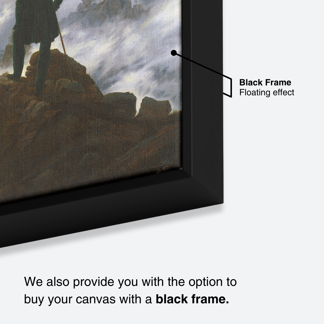 Black floating frame is a popular add-on to any canvas during the purchase. The frame is build using our proprietary profile radial pine, and coated with black graphite that gives it a gallery quality, luxurious matte finish.