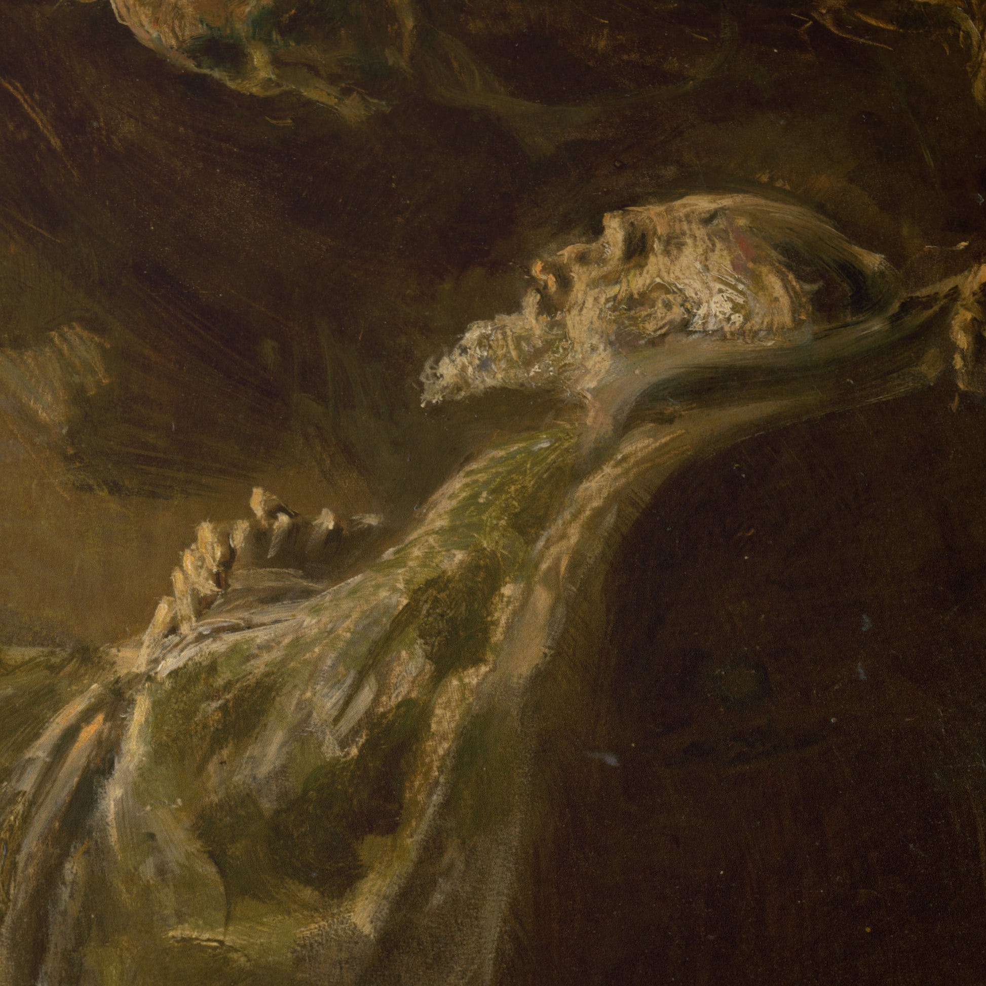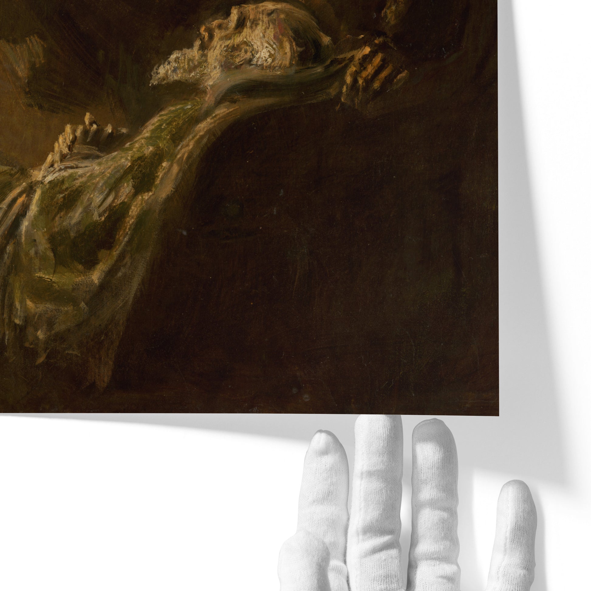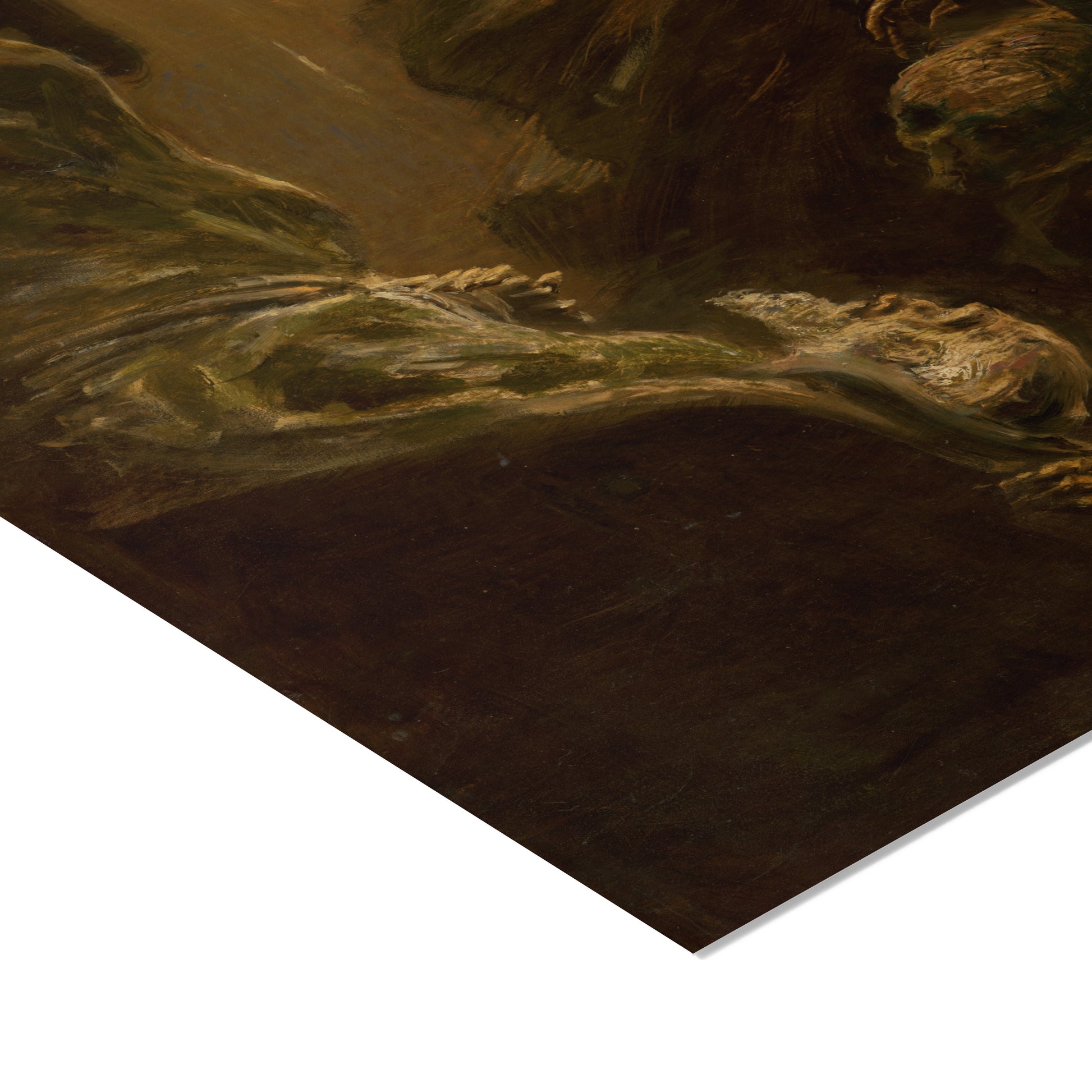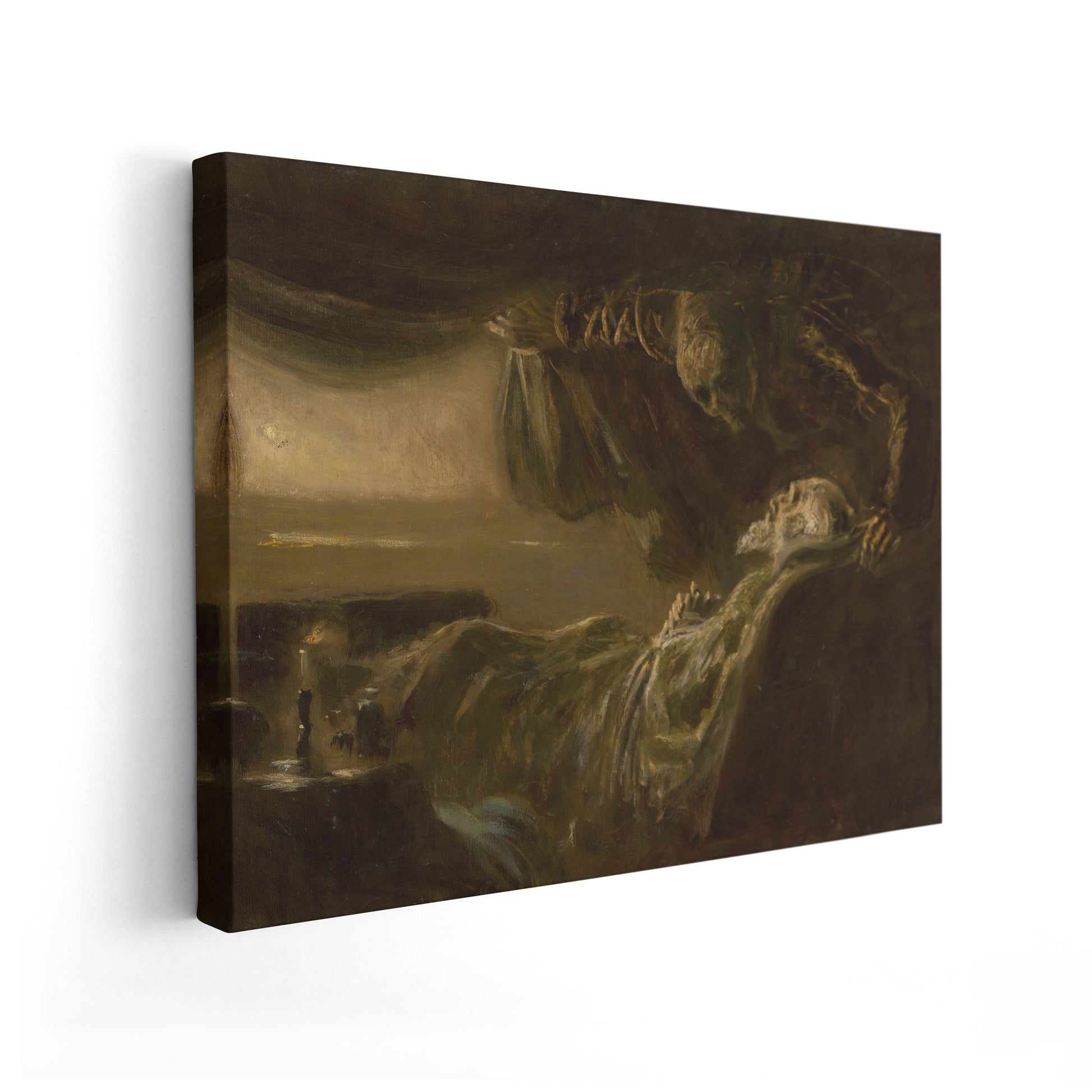 Old Man's Death by László Mednyánszky, painted in 1890, reflects the artist’s deep interest in marginal figures and the quiet dignity of human suffering. Mednyánszky, a Hungarian Symbolist with strong ties to realism and spiritual introspection, often portrayed the poor, the elderly, and the socially invisible with unusual empathy. In this work, the scene is intimate and subdued, focusing on the fragile presence of an aging man at the threshold of death. The palette is typically muted, dominated by earthy and dark tonalities that create a somber atmosphere and emphasize the stillness of the moment. Rather than dramatizing death, Mednyánszky approaches it as a contemplative and almost sacred transition, inviting the viewer to reflect on mortality without spectacle. The painting aligns with late nineteenth century currents that explored existential themes and psychological depth, revealing the artist’s commitment to portraying not only physical reality but also the inner condition of his subjects.