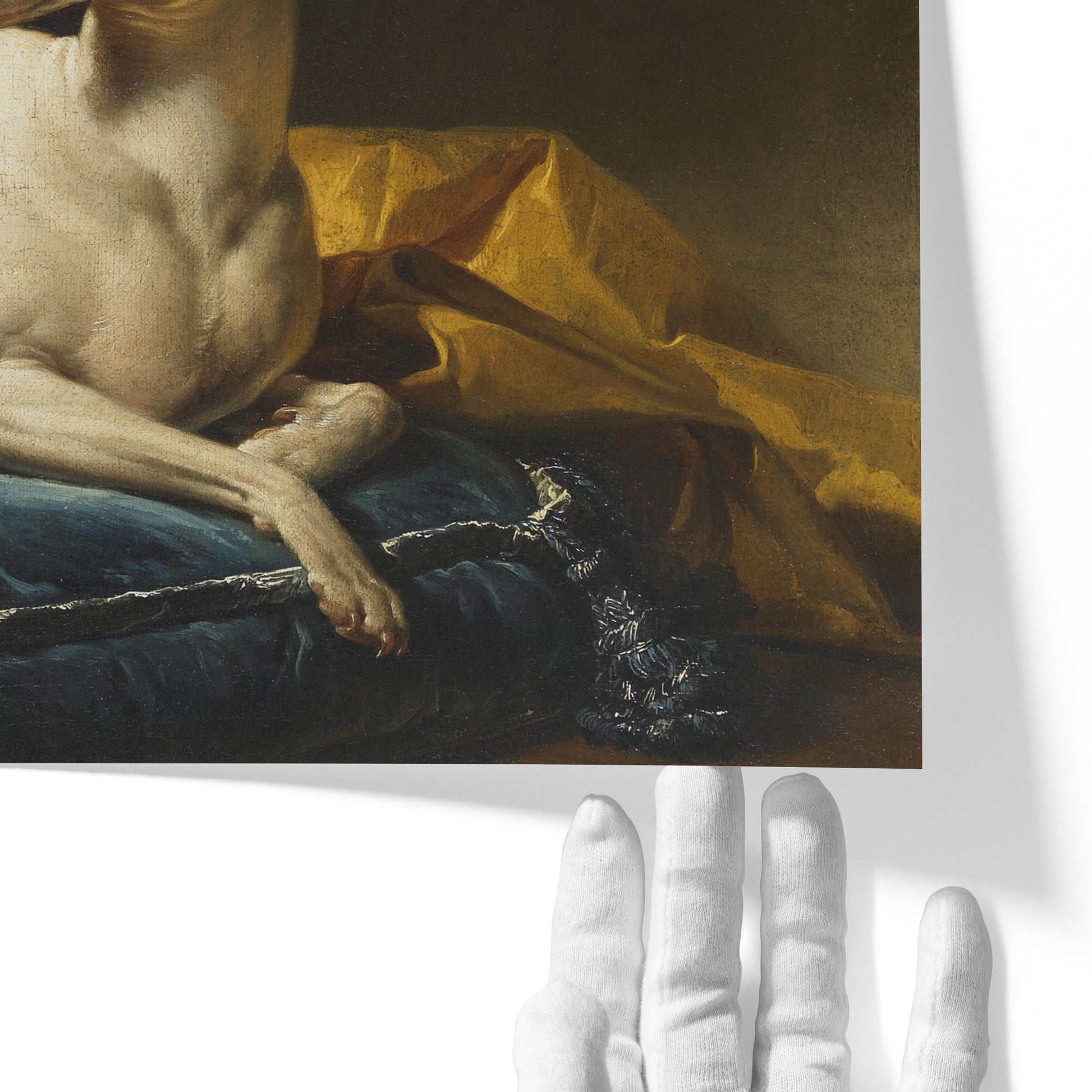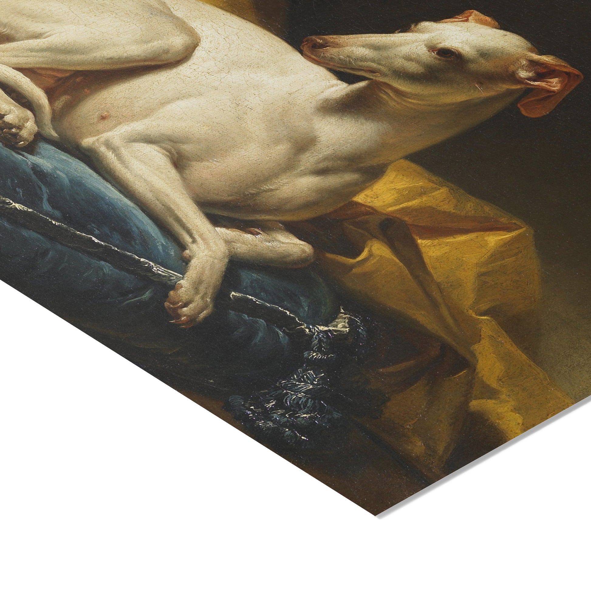 This portrait by French neoclassical painter François-André Vincent depicts Diane, the small greyhound owned by his friend and patron Bergeret de Grancourt. The work elevates an animal subject with a compositional dignity typically reserved for human sitters, placing the dog against elegant drapery and luxurious textures that reflect both affection and a subtle challenge to conventional portraiture norms of the 18th century. Painted during the artist’s early mature period, the piece engages with the Enlightenment interest in naturalism and domestic life while also showcasing Vincent’s refined handling of paint and character. The painting is held in the Musée des Beaux-Arts et d’Archéologie in Besançon, where it contributes to an understanding of how animal portraiture intersected with social and artistic currents of its time.