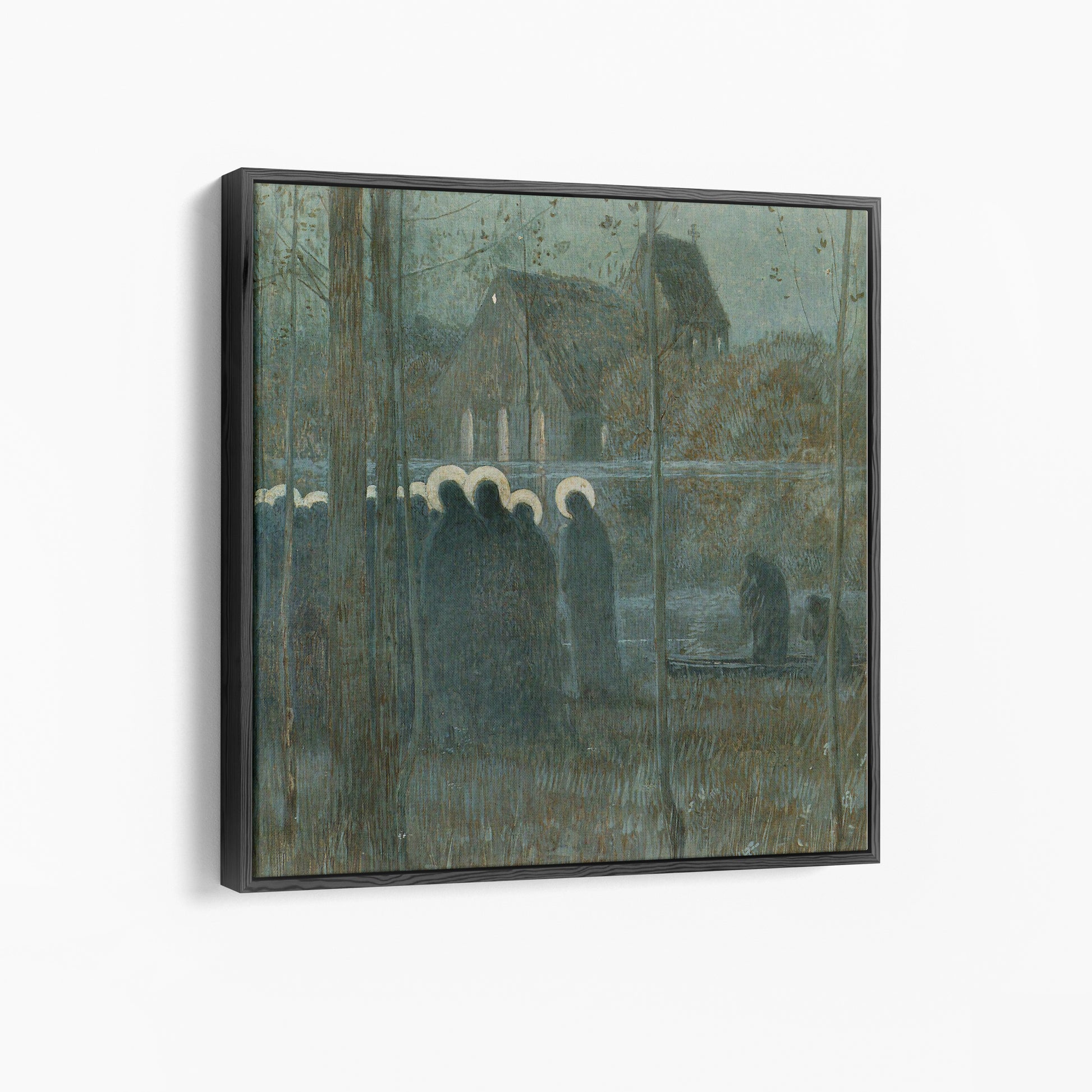 Procession of Souls is a symbolist painting by Louis Welden Hawkins, created around 1890, during a period when European artists were increasingly turning away from realism in favor of psychological and spiritual themes. The work presents a silent, almost ritualistic movement of figures that appear detached from the physical world, suggesting a collective passage between life and death rather than a literal religious scene. Hawkins was closely connected to Symbolism and the Nabis circle, and his interest lay in inner states of being, memory, and the unseen forces shaping human existence. In this painting, individuality dissolves into a shared destiny, reinforcing the Symbolist belief that art should evoke ideas and emotions rather than describe reality. The restrained palette and simplified forms contribute to a meditative atmosphere, aligning the work with late nineteenth century anxieties about mortality, transcendence, and the limits of rational thought, themes that were central to Symbolist art at the fin de siècle.