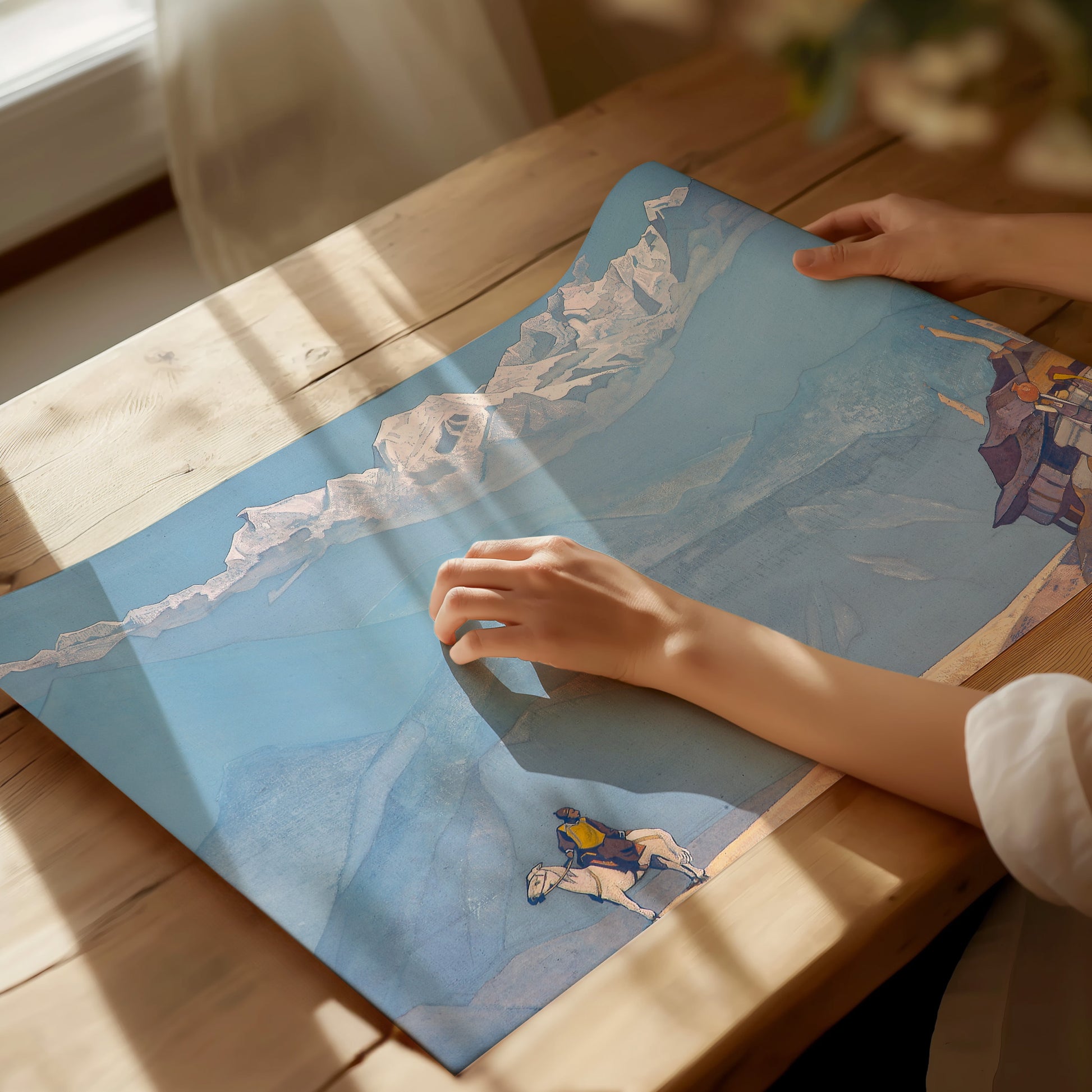"Remember" by Nicholas Roerich is a captivating painting that embodies the artist's profound interest in spirituality, culture, and the mysticism of the Himalayas. Created in the 20th century, this artwork is part of Roerich's extensive series that explores the sacred and the majestic landscapes of the East. The painting features symbolic elements and vibrant colors, typical of Roerich's style, depicting a serene yet powerful scene that seems to bridge the earthly with the divine. Through his work, Roerich aimed to convey a message of peace and unity, inspired by his travels across India, Tibet, and Central Asia. "Remember" invites the viewer into a contemplative state, encouraging a reflection on the interconnectedness of all beings and the importance of preserving cultural and spiritual heritage. Roerich's paintings are not just visual experiences but gateways to a deeper understanding of humanity's quest for meaning and harmony with the universe.