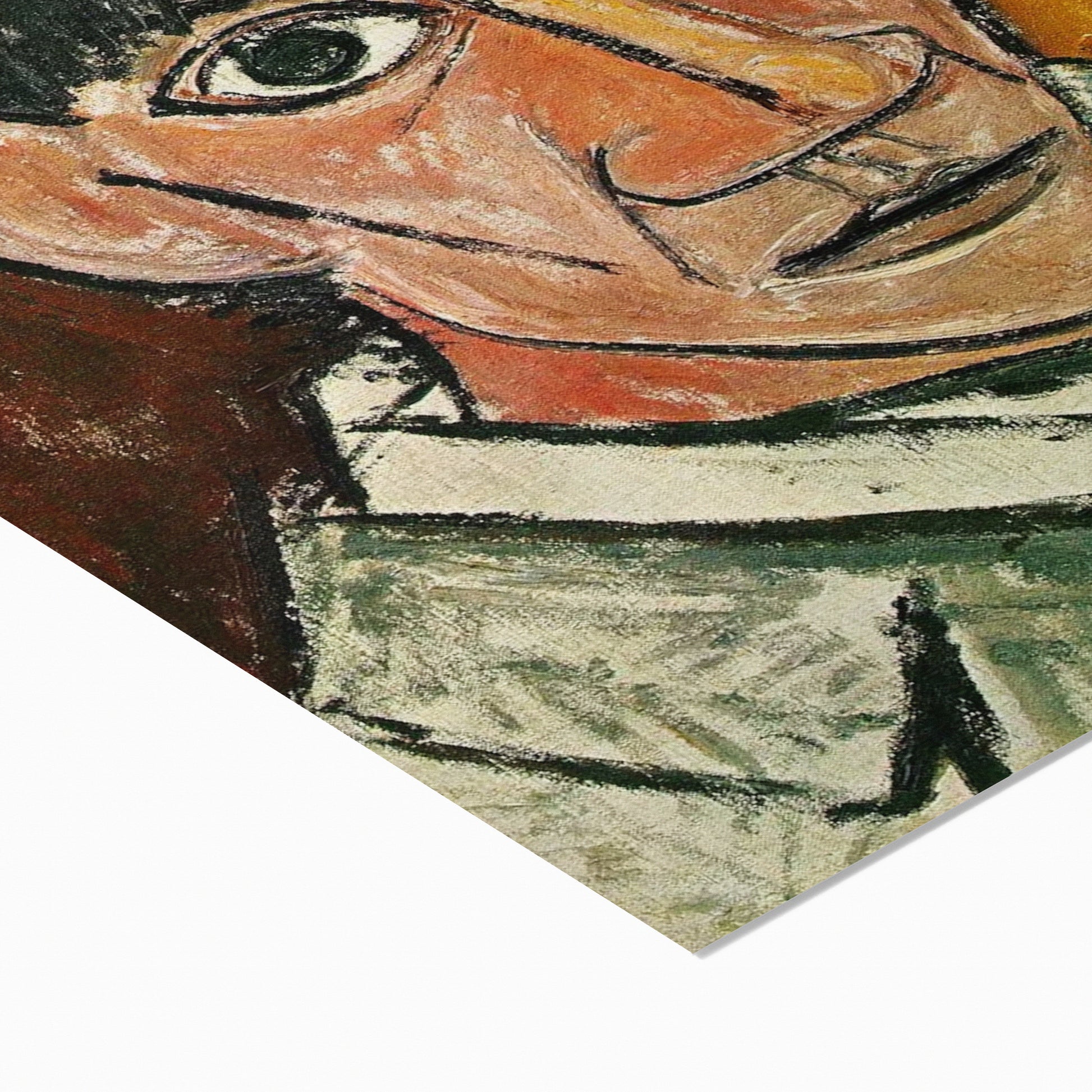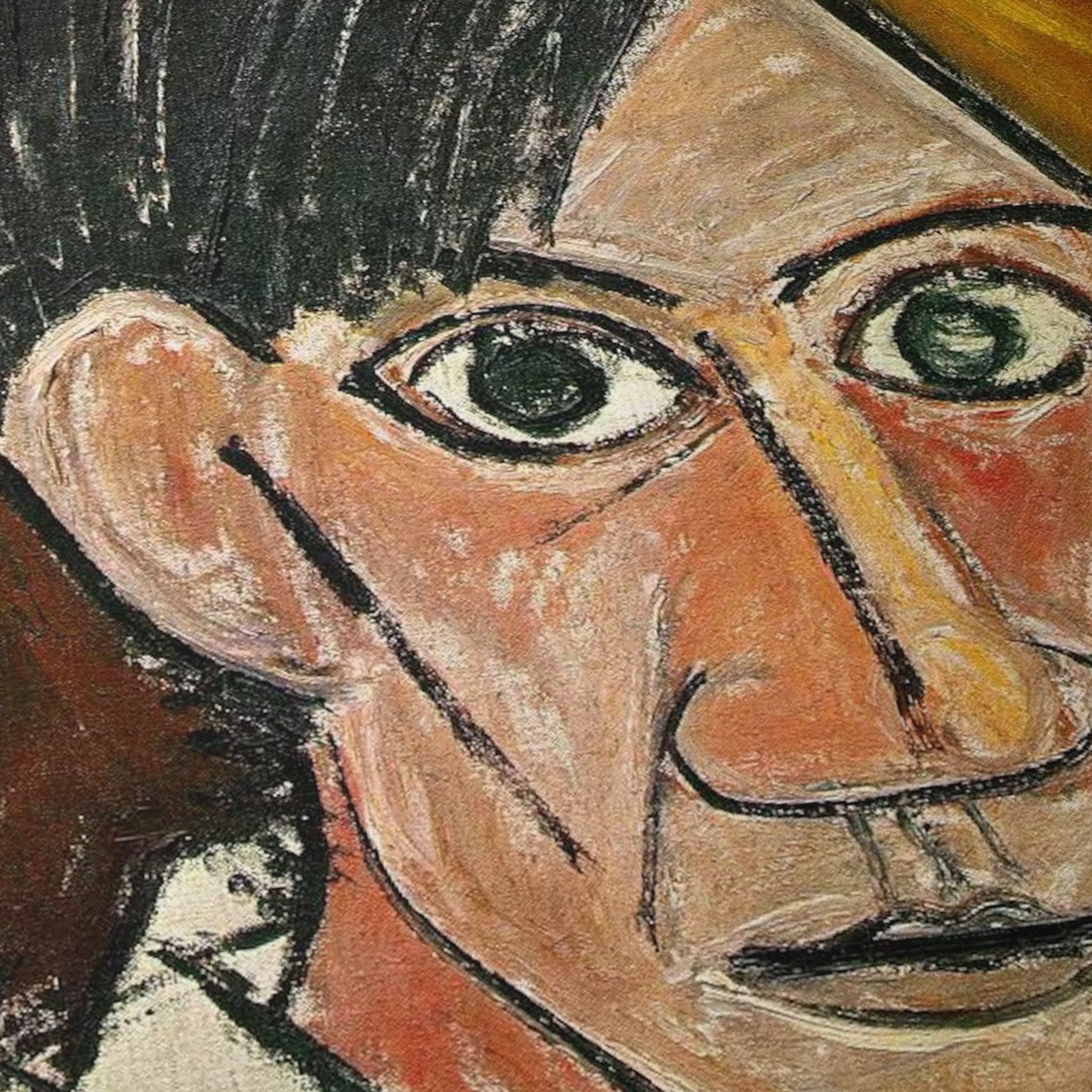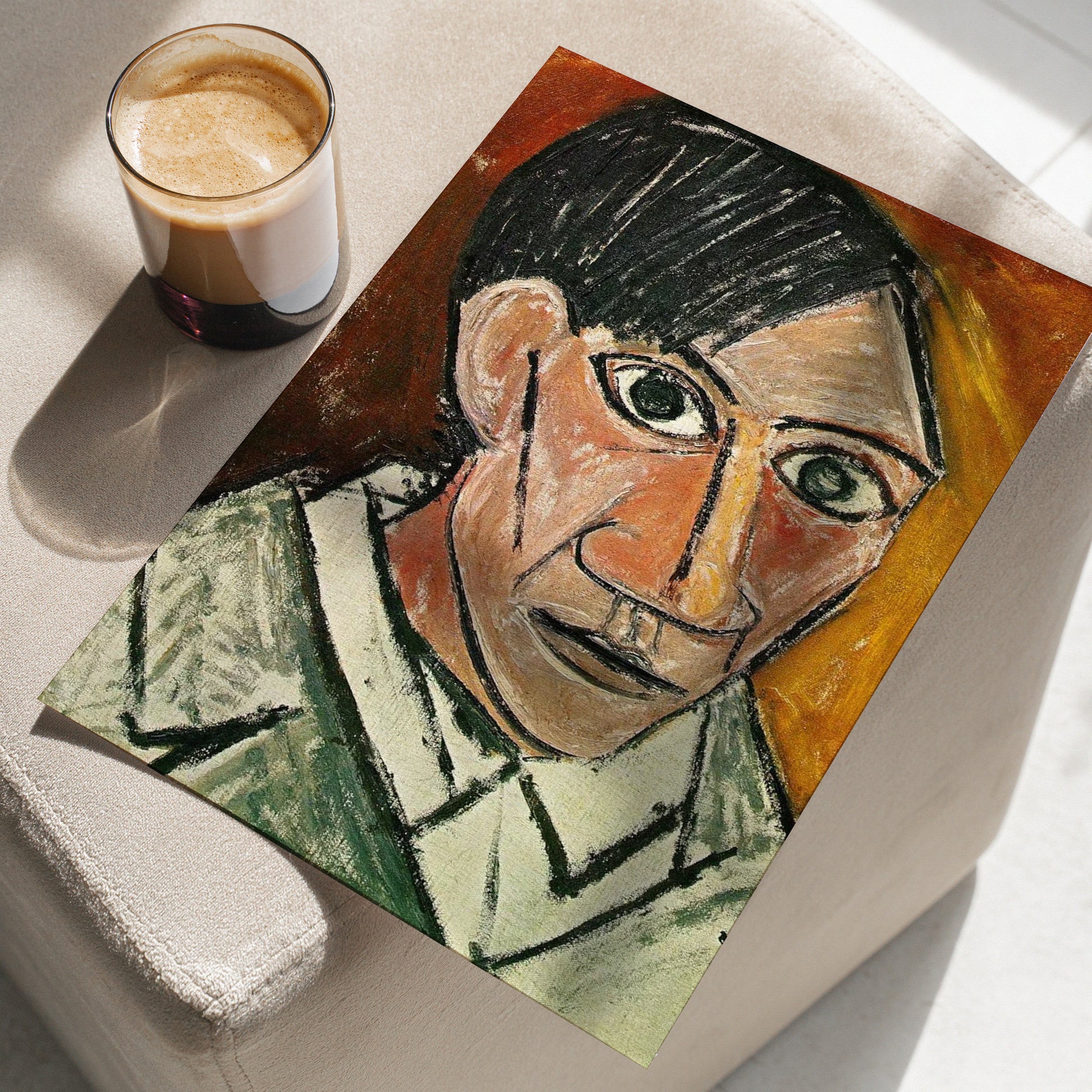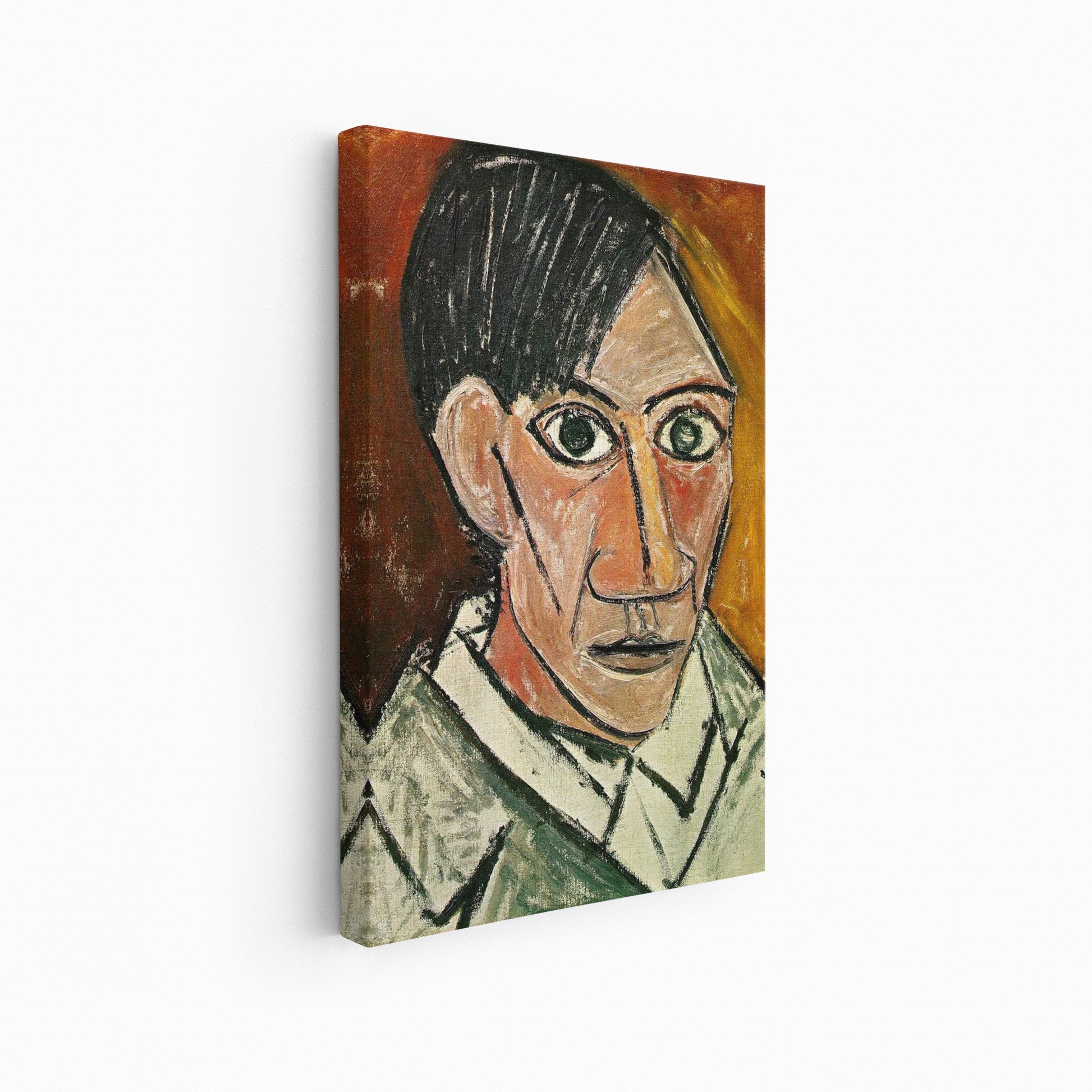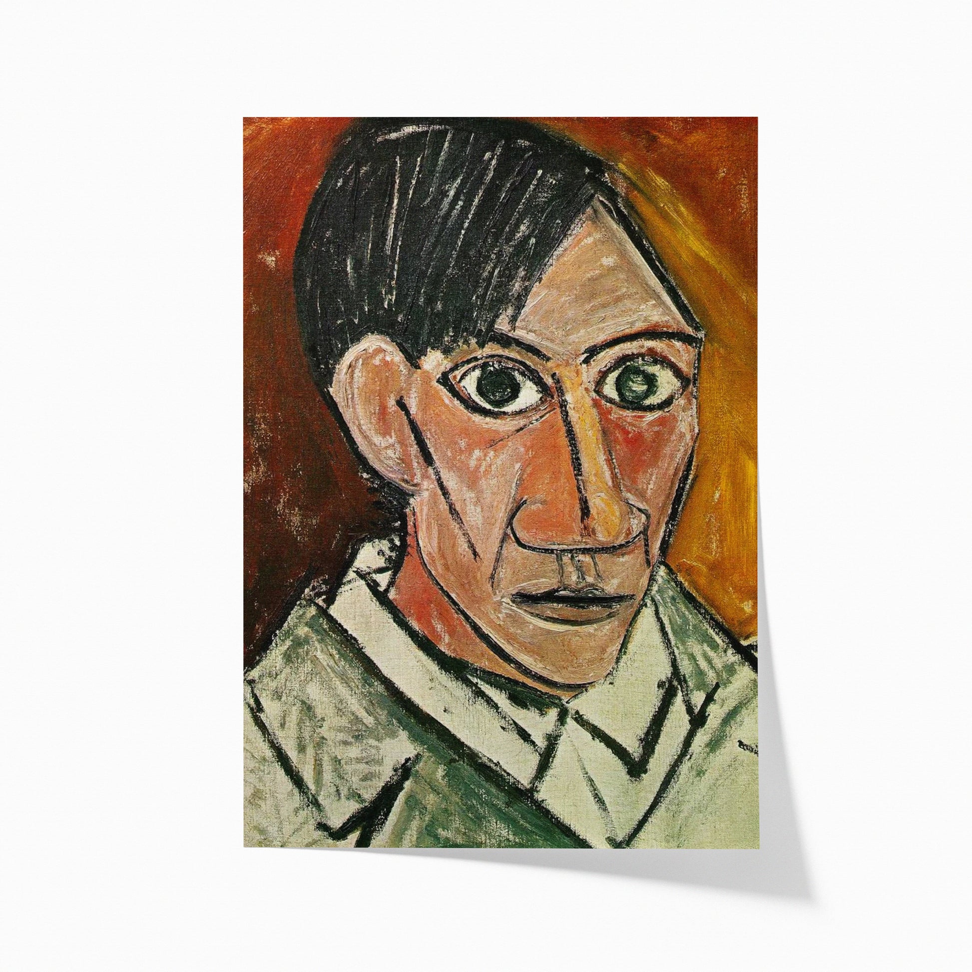 "Self Portrait" by Pablo Picasso, painted in 1907, is a striking example of the artist's early work. In this introspective piece, Picasso presents himself with a somber and contemplative expression, his features rendered with bold, angular lines characteristic of his Blue Period. The painting exudes a sense of melancholy and introspection, with Picasso's eyes gazing directly at the viewer, inviting contemplation of the artist's inner thoughts and emotions. The use of a limited color palette dominated by cool blues and greens adds to the overall mood of introspection and melancholy. "Self Portrait" stands as a poignant reflection of Picasso's early struggles and the emotional depth that would come to define his artistic career.