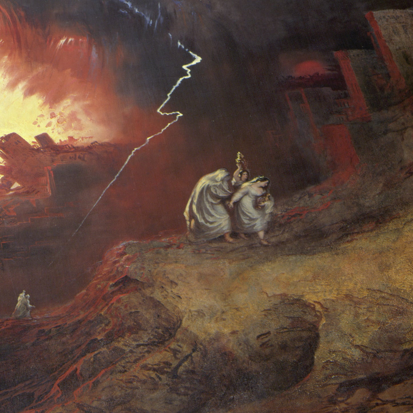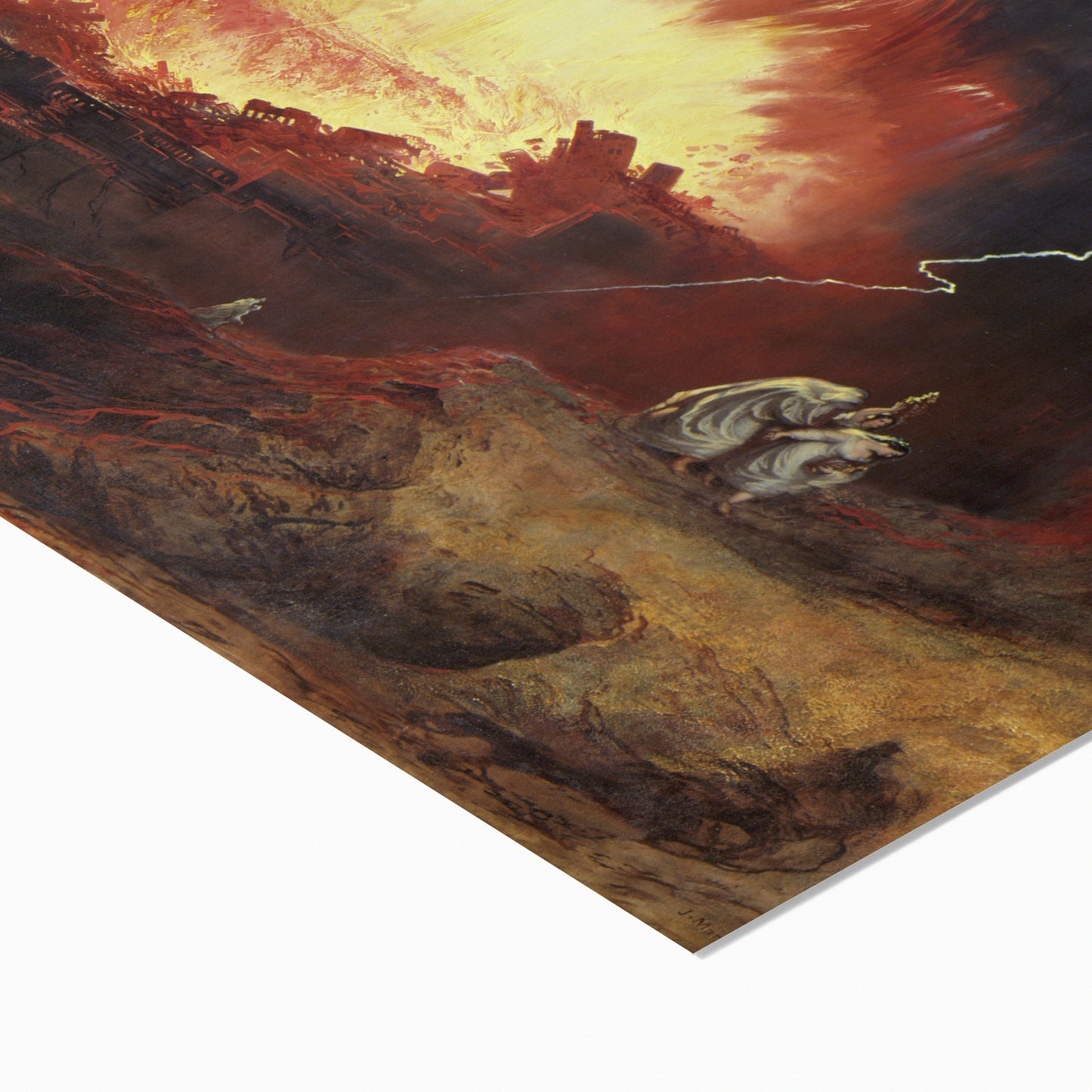 "Sodom and Gomorrah" by John Martin, completed in 1852, is a gripping portrayal of the biblical tale of divine retribution. This monumental painting depicts the cities consumed by flames and brimstone, as angels unleash destruction upon the sinful inhabitants. Martin's dramatic use of light and shadow, along with the chaotic scene of fleeing figures and billowing smoke, conveys the horror and consequence of human wickedness. The central figure of Lot's wife transformed into a pillar of salt serves as a haunting reminder of the consequences of disobedience. "Sodom and Gomorrah" stands as a powerful testament to Martin's skill in capturing epic biblical narratives with vivid intensity, inviting viewers to reflect on themes of divine judgment and moral accountability.