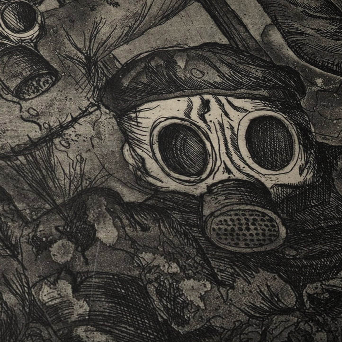 Otto Dix's Stormtroopers Advance Under a Gas Attack (1924) is a visceral portrayal of the horrors of modern warfare, drawn from the artist’s own harrowing experiences as a soldier in World War I. The painting depicts gas-masked soldiers advancing through a toxic, nightmarish landscape, their dehumanized forms reduced to skeletal, insect-like figures. The oppressive atmosphere is amplified by the thick, swirling clouds of gas that obscure the battlefield, creating a sense of suffocation and chaos. Dix’s use of sharp lines and stark contrasts conveys the brutality and disorientation of chemical warfare, a devastating hallmark of the conflict. The soldiers, stripped of individuality and humanity, become symbols of the mechanized destruction of war. Through this work, Dix not only condemns the inhumanity of war but also forces the viewer to confront its physical and psychological toll, making it a powerful anti-war statement and a chilling reminder of the fragility of life amidst technological advancement.
