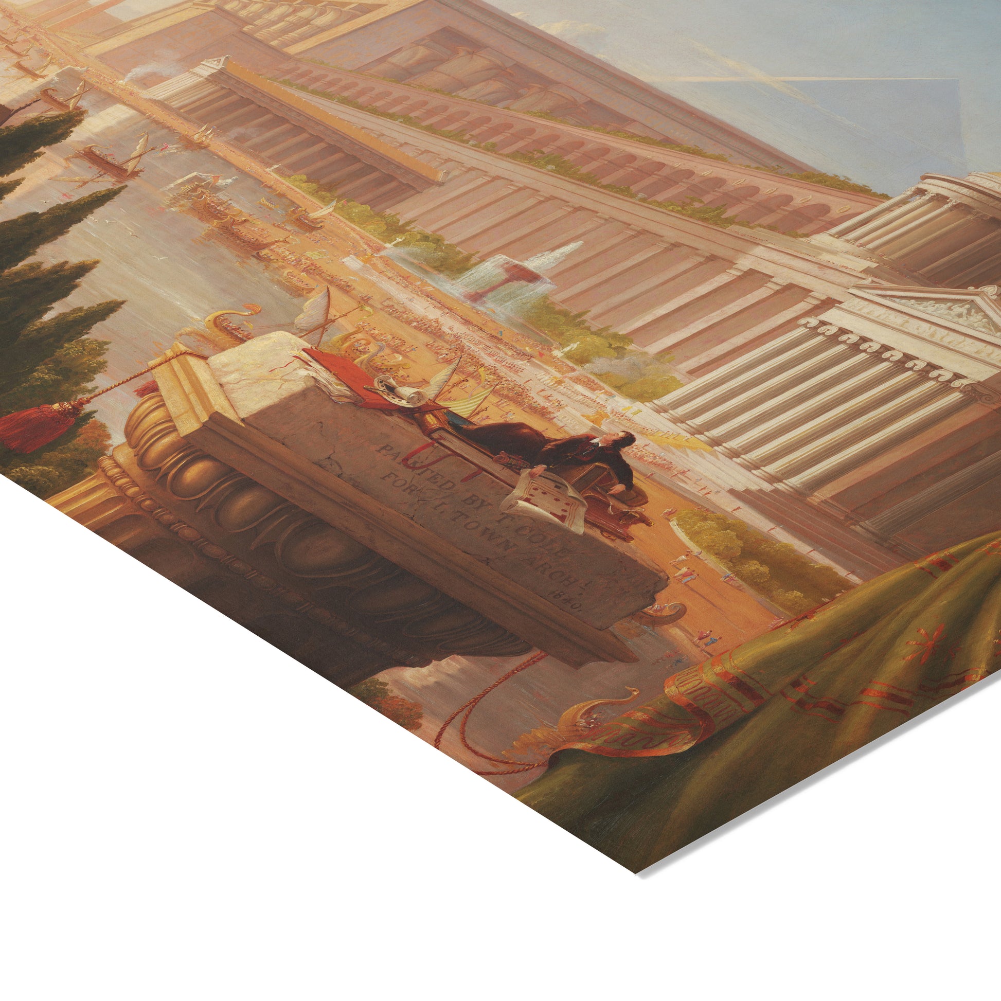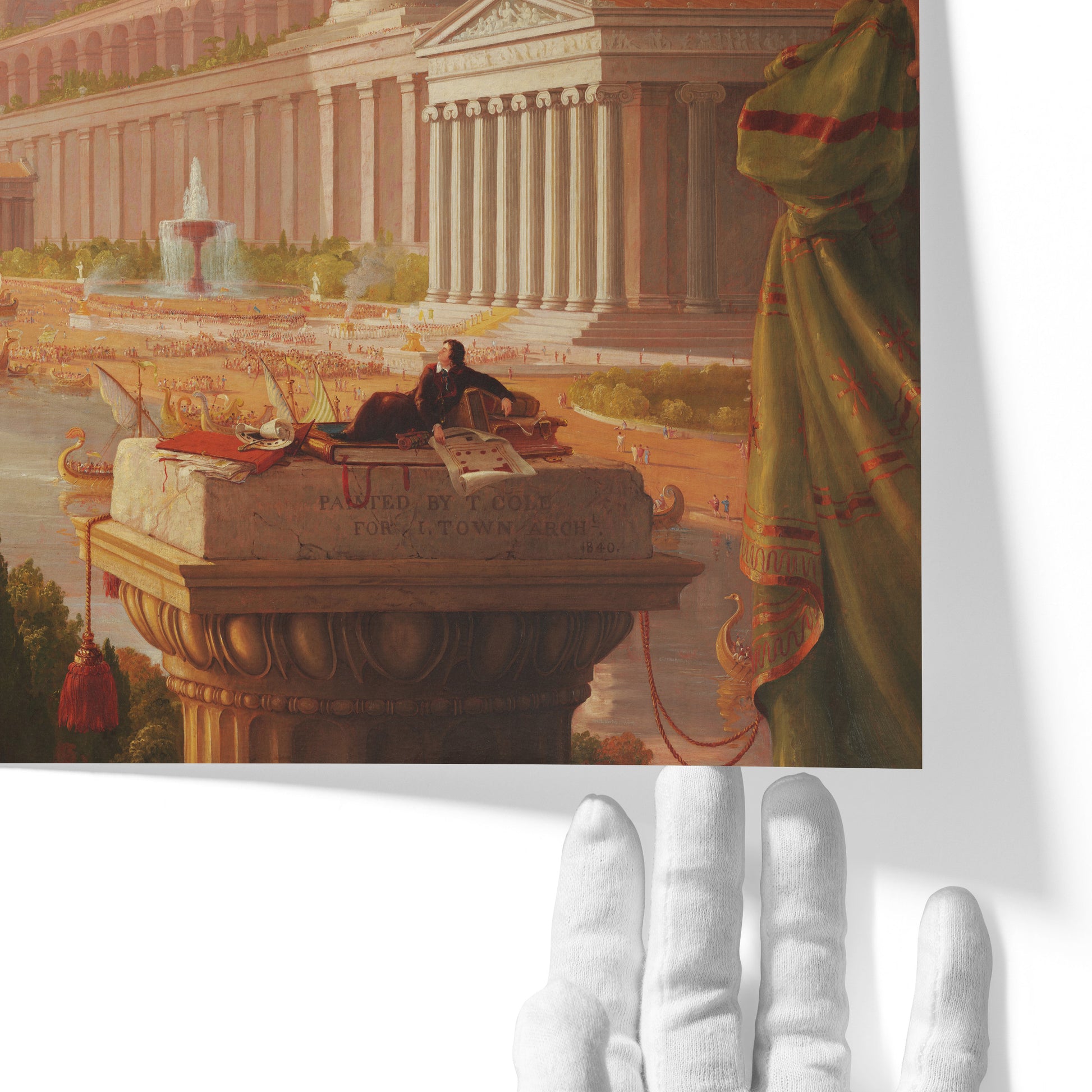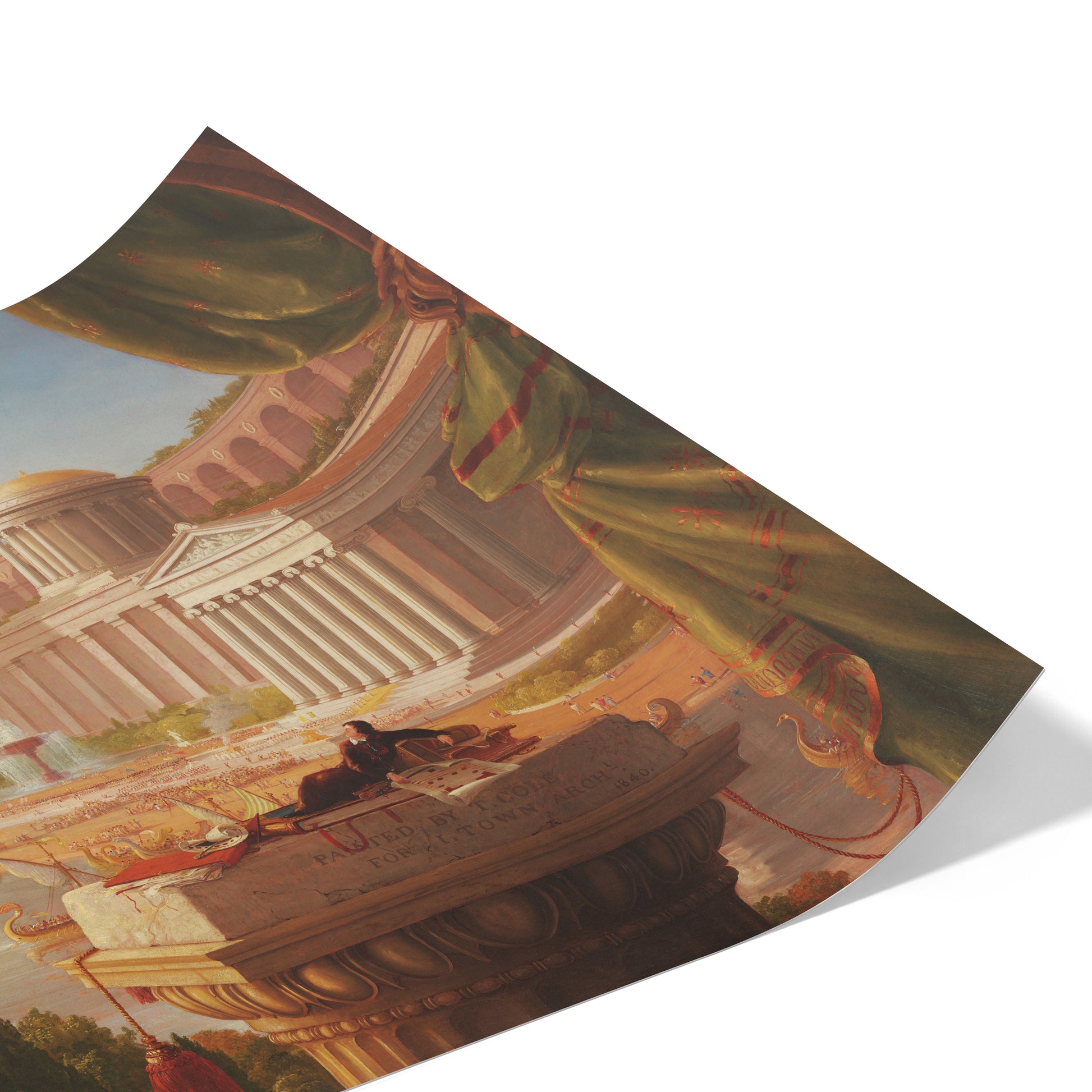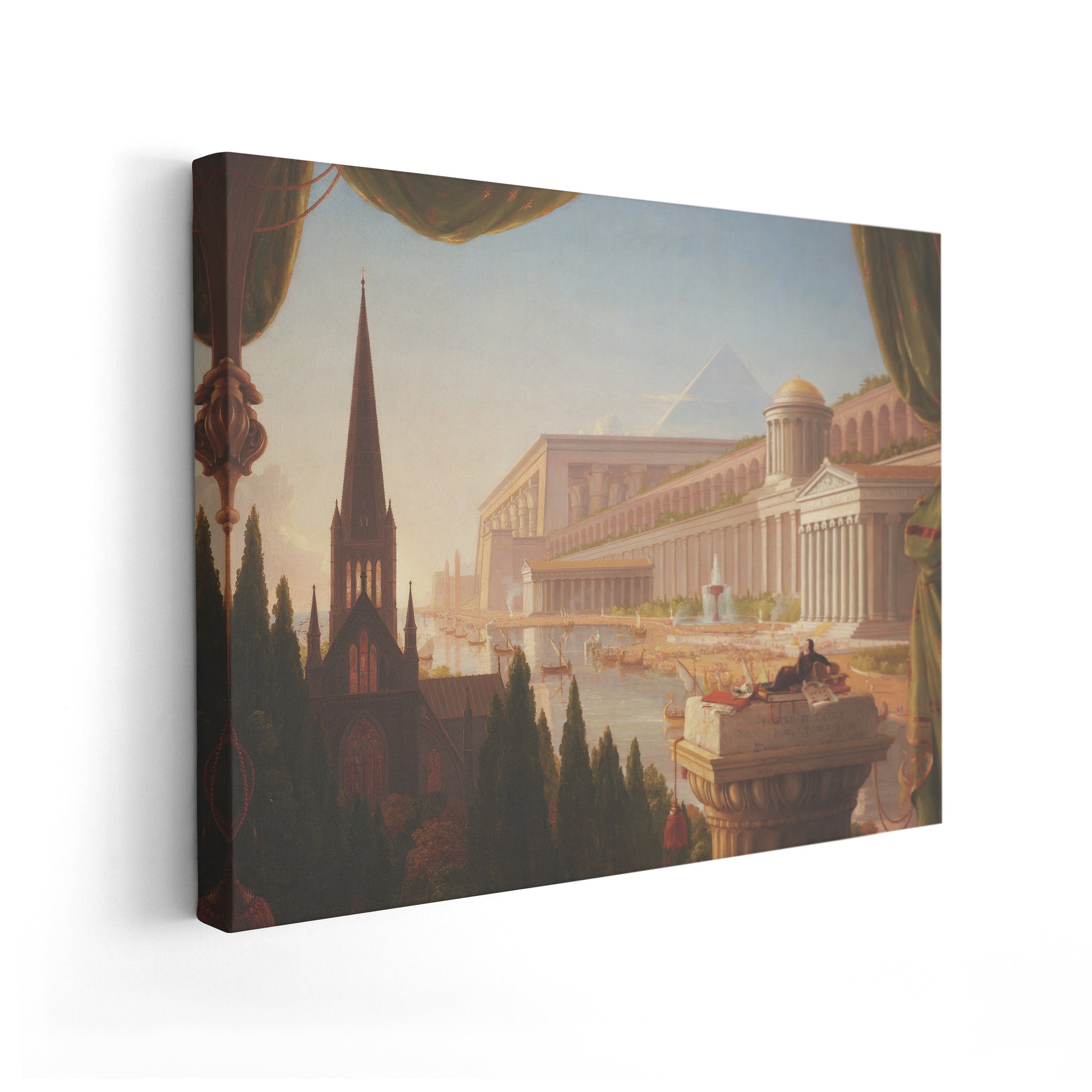 Thomas Cole’s The Architect’s Dream (1840) is a sweeping allegory of architectural history, presenting in one dreamlike panorama the achievements of Egypt, Greece, Rome, and the Gothic Middle Ages. By layering these styles into a single imaginative landscape, Cole not only demonstrates his fascination with the evolution of culture but also elevates architecture as a symbol of human creativity and spiritual aspiration. The reclining figure of the architect, lost in contemplation, reminds us that all these monuments are both products of intellect and visions of the imagination, making the painting as much about the act of dreaming as about the history it depicts.