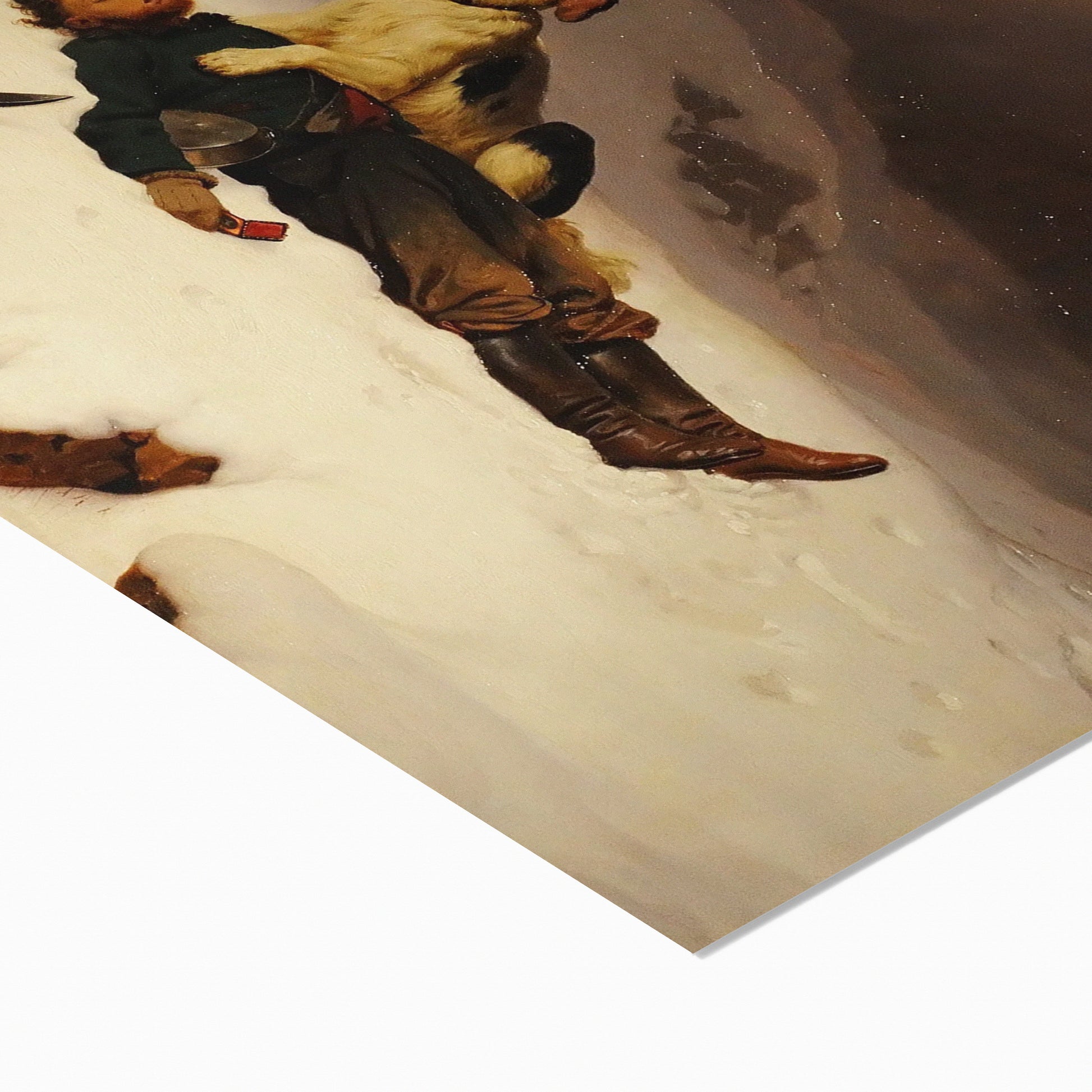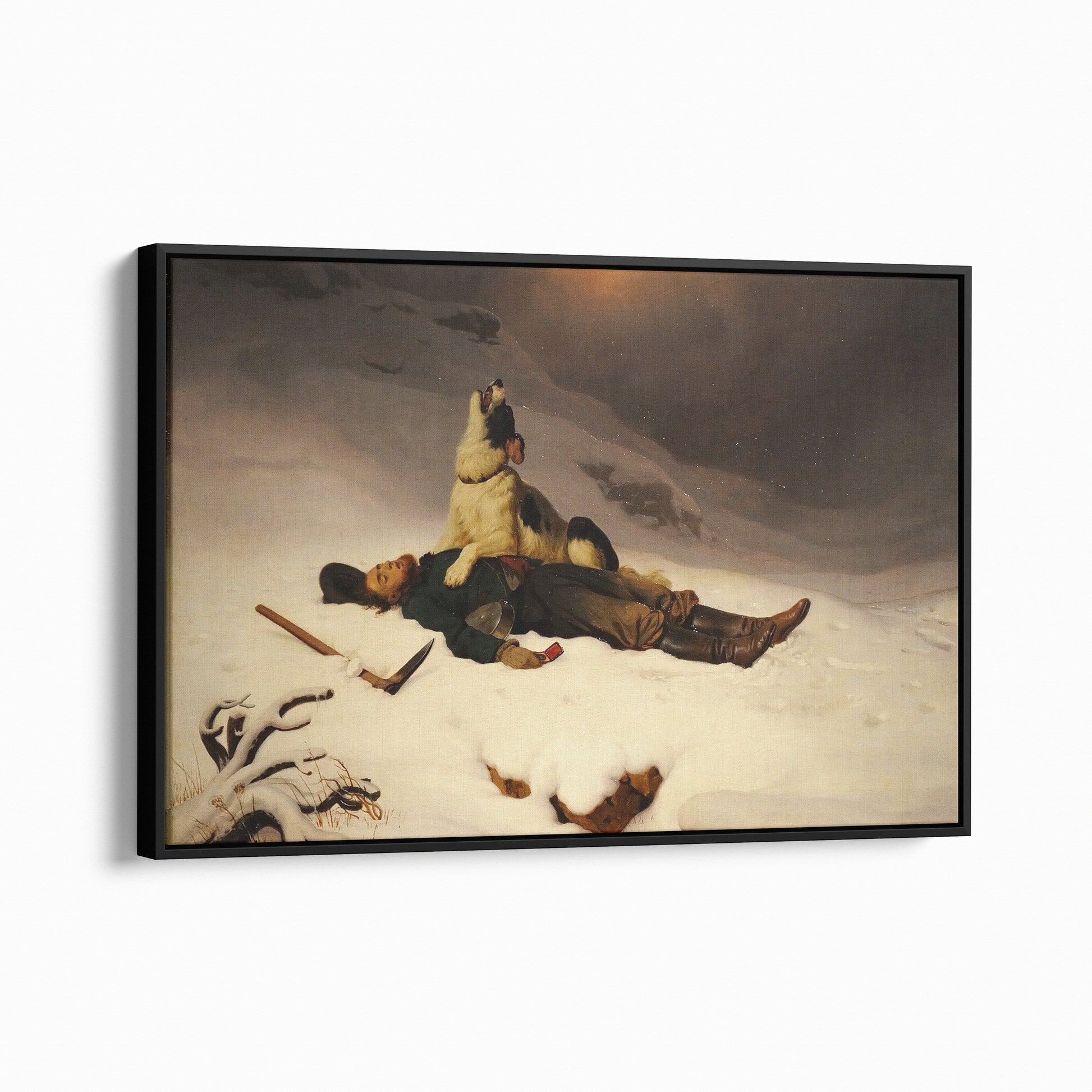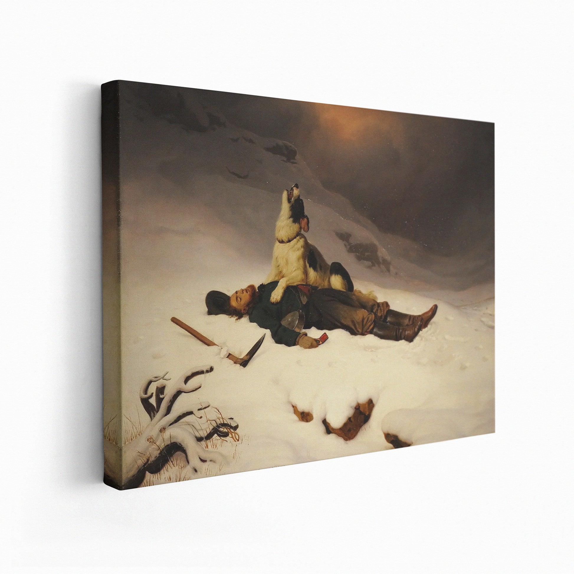 "The Dead Miner" by Charles Christian Nahl, completed in 1867, is a poignant and powerful depiction of the harsh realities faced by miners during the California Gold Rush. In this emotionally charged scene, Nahl portrays a miner lying lifeless on the ground, his body worn and exhausted from the grueling work of mining for gold. The miner's comrades gather around him, their expressions a mix of grief, exhaustion, and resignation to the dangers of their profession. Nahl's attention to detail, particularly in the miner's rugged clothing and the rugged terrain, conveys the gritty reality of life in the mines. The stark contrast between light and shadow adds to the dramatic intensity of the scene, emphasizing the solemnity of the moment. "The Dead Miner" serves as a poignant reminder of the sacrifices and hardships endured by those who sought fortune in the goldfields, capturing the human toll of the pursuit of wealth during this tumultuous period in American history.