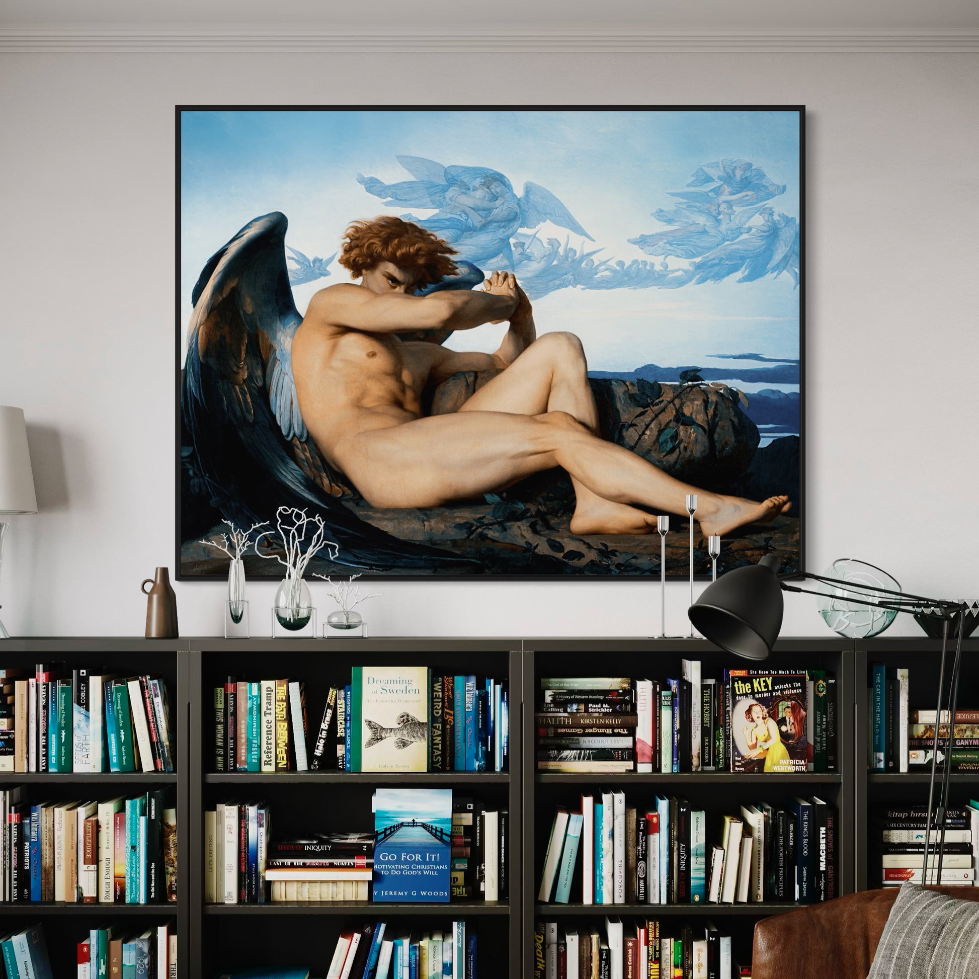 "The Fallen Angel" by Alexandre Cabanel is a mesmerizing portrayal of Lucifer's descent from heaven, capturing the moment of his expulsion with haunting beauty and poignancy. Cabanel's meticulous attention to detail and ethereal brushwork bring to life the figure of the fallen angel, who is depicted with majestic wings and a sorrowful expression. The painting exudes a sense of melancholy and defiance as Lucifer grapples with his banishment from the divine realm. Through his masterful use of light and shadow, Cabanel creates a sense of otherworldly atmosphere, inviting viewers to contemplate the complexities of good and evil, redemption and damnation. "The Fallen Angel" stands as a timeless masterpiece, illustrating Cabanel's unparalleled ability to imbue mythological subjects with profound emotional resonance.