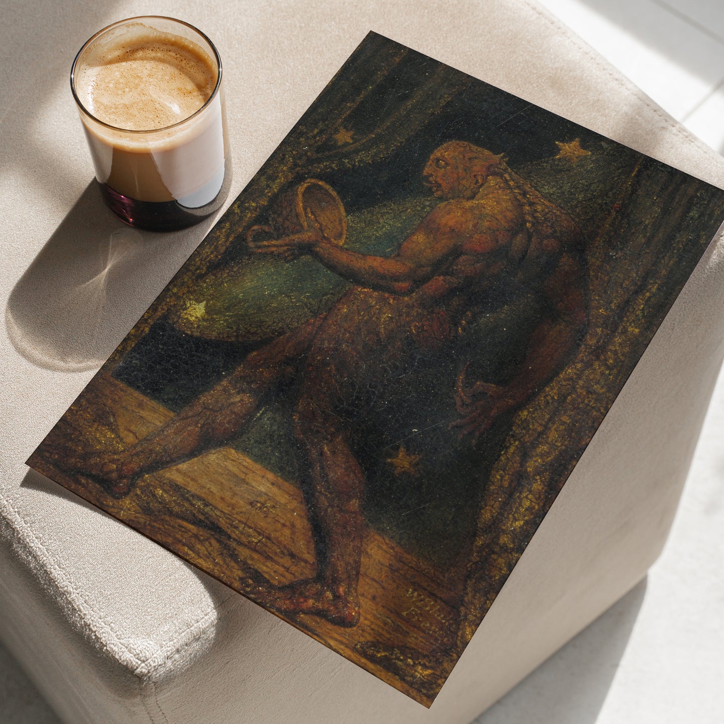 William Blake was a visionary artist, poet, and printmaker whose work defied the conventions of his time and continues to resonate for its deeply symbolic and otherworldly qualities. A Romantic in spirit, Blake rejected materialism and rationalism, instead embracing a mystical worldview that celebrated imagination as the ultimate creative force. His illuminated manuscripts, such as Songs of Innocence and Experience, blend poetry with intricate, hand-colored illustrations, creating a unique synthesis of word and image. Blake's art often delves into profound themes of spirituality, morality, and human suffering, as exemplified in his striking depictions of biblical and mythical figures, such as Urizen, the embodiment of restrictive reason. Although dismissed during his lifetime as eccentric or even mad, Blake’s prophetic voice and innovative artistry have established him as a seminal figure in the Romantic movement and an enduring icon of artistic freedom and individuality.
