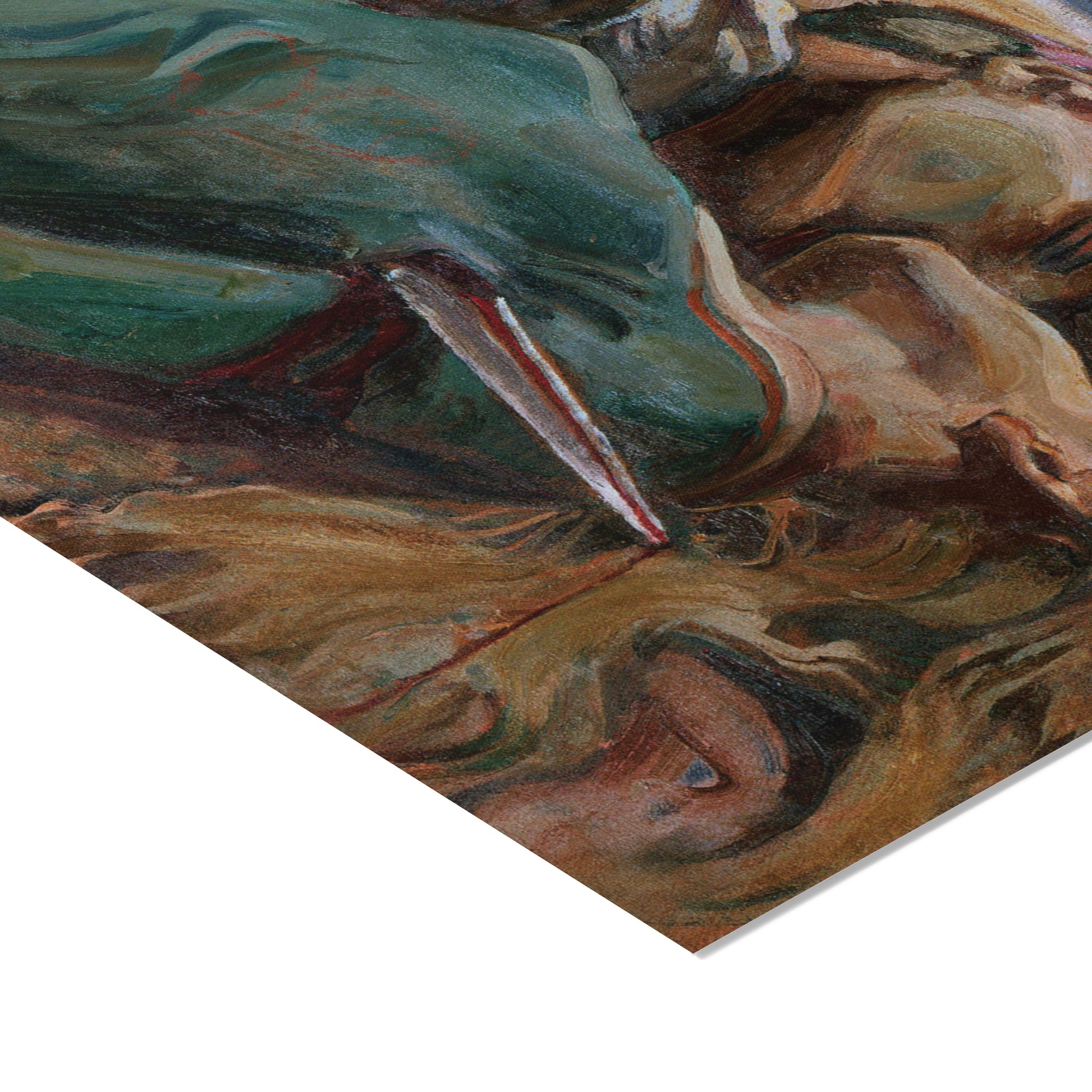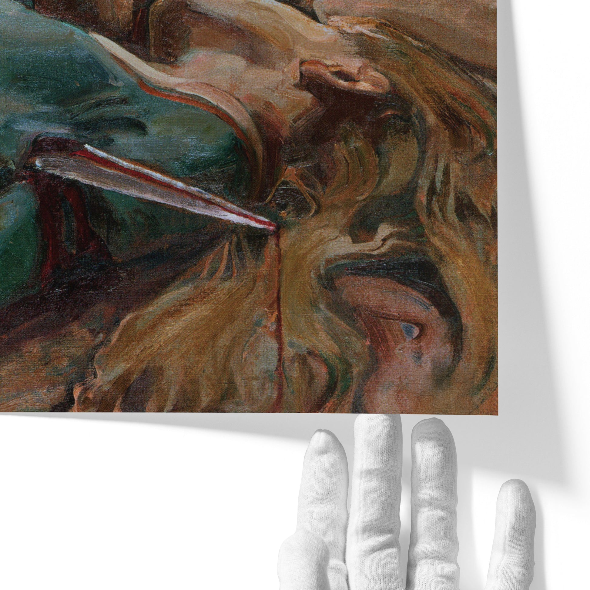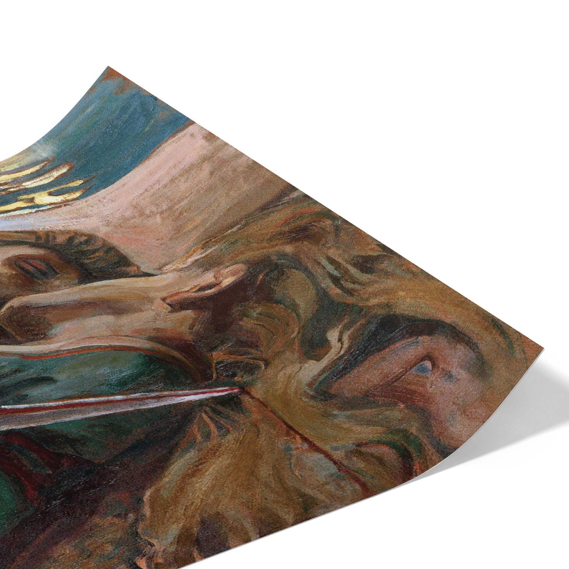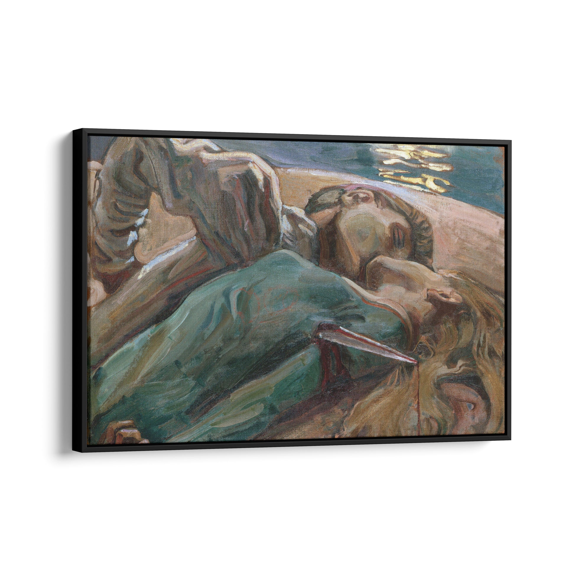 Akseli Gallen-Kallela’s The Lovers (1906–1917) portrays two figures locked in an embrace that is both tender and unsettling, disrupted by the presence of a sword between their bodies. The contrast between intimacy and danger turns the painting into more than a depiction of passion—it becomes a meditation on the dual nature of love as both life-giving and destructive. Painted during a period when Gallen-Kallela moved away from his heroic Kalevala scenes to more personal, psychological themes, the work reflects Symbolist ideals by using the sword as a powerful metaphor for sacrifice, betrayal, or the inevitability of loss. It captures love not as pure harmony, but as a force shadowed by fragility and mortality.