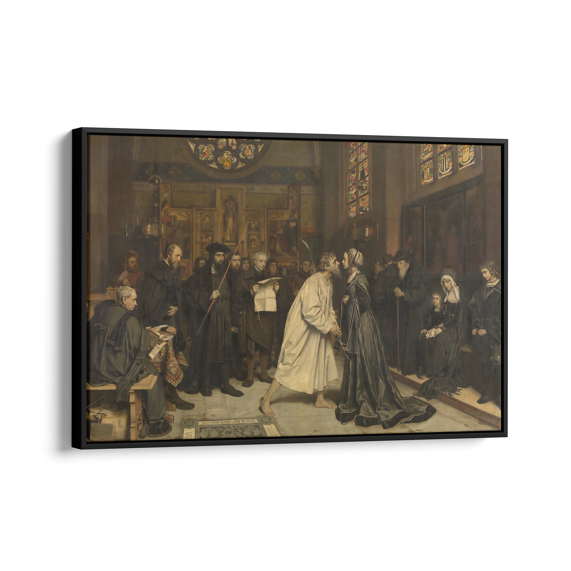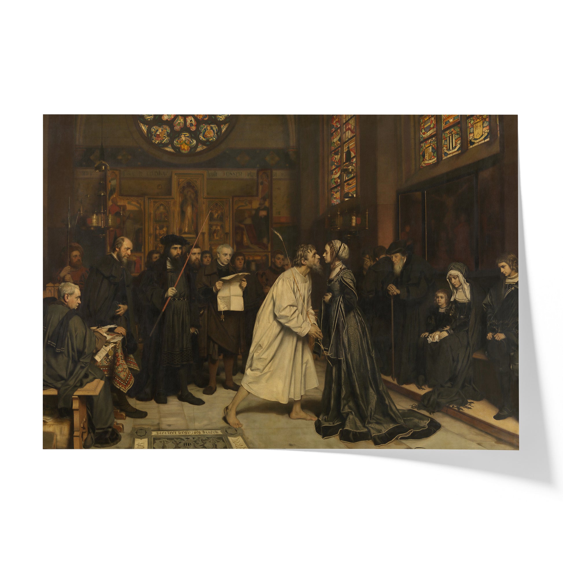 The Mouth Kiss (1879) by Pierre Jean van der Ouderaa does not depict a romantic gesture but a symbolic act rooted in historical custom, where a kiss functioned as a formal seal of reconciliation. In the medieval and early modern Low Countries, such a kiss could mark the end of a conflict, confirming forgiveness, restitution, or the resolution of a legal dispute, much like a contract signed before witnesses. The closeness of the figures is therefore not meant to express desire, but obligation and social order, turning an intimate gesture into a public statement of peace. The tension in the scene comes from this contradiction, a gesture normally associated with affection is stripped of emotion and transformed into duty. By focusing on the mouths and the restrained body language, the painting emphasizes the gravity of the moment, suggesting that reconciliation is not always heartfelt but necessary. The kiss becomes a boundary between past violence and restored harmony, carrying the weight of law, memory, and social balance rather than love.
