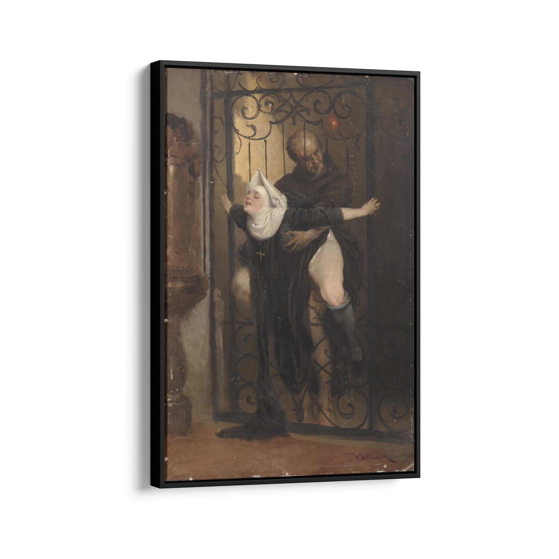 Heinrich Lossow’s 1880 painting The Sin (Die Versündigung) confronts viewers with a provocative and controversial vision of the infamous Banquet of Chestnuts, an alleged 1501 Vatican event associated with Cesare Borgia and the reputed moral corruption of the papal court, drawing on a single, debated account by Johann Burchard. In depicting intimate, forbidden acts between clergy and courtesans, Lossow does more than illustrate a scandal: he uses chiaroscuro and realistic detail to explore themes of temptation, hypocrisy, and the tension between virtue and vice, forcing the viewer to reckon with the disparity between religious ideals and human behavior. While the historical accuracy of the scene remains disputed, the painting’s bold handling of erotic and moral subject matter sparked significant outrage in its day and continues to provoke discussion about power, desire, and the role of art in challenging societal norms.