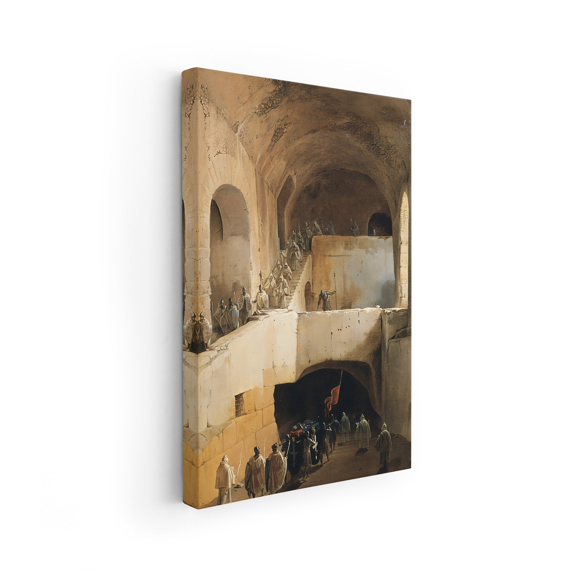 Franz Ludwig Catel’s Burial of a Crusader captures the solemn dignity of a medieval funeral while reflecting the Romantic fascination with history and sacrifice. The fallen knight, representing the crusaders who fought in the Holy Land, is surrounded by priests and soldiers whose gestures evoke reverence and ritual. Rather than striving for historical accuracy, Catel employs dramatic contrasts of light and shadow to elevate the scene into a meditation on faith, honor, and devotion. In this way, the painting transforms a specific moment of loss into a timeless reflection on mortality and the ideals that defined both the Middle Ages and the Romantic imagination of the 19th century.