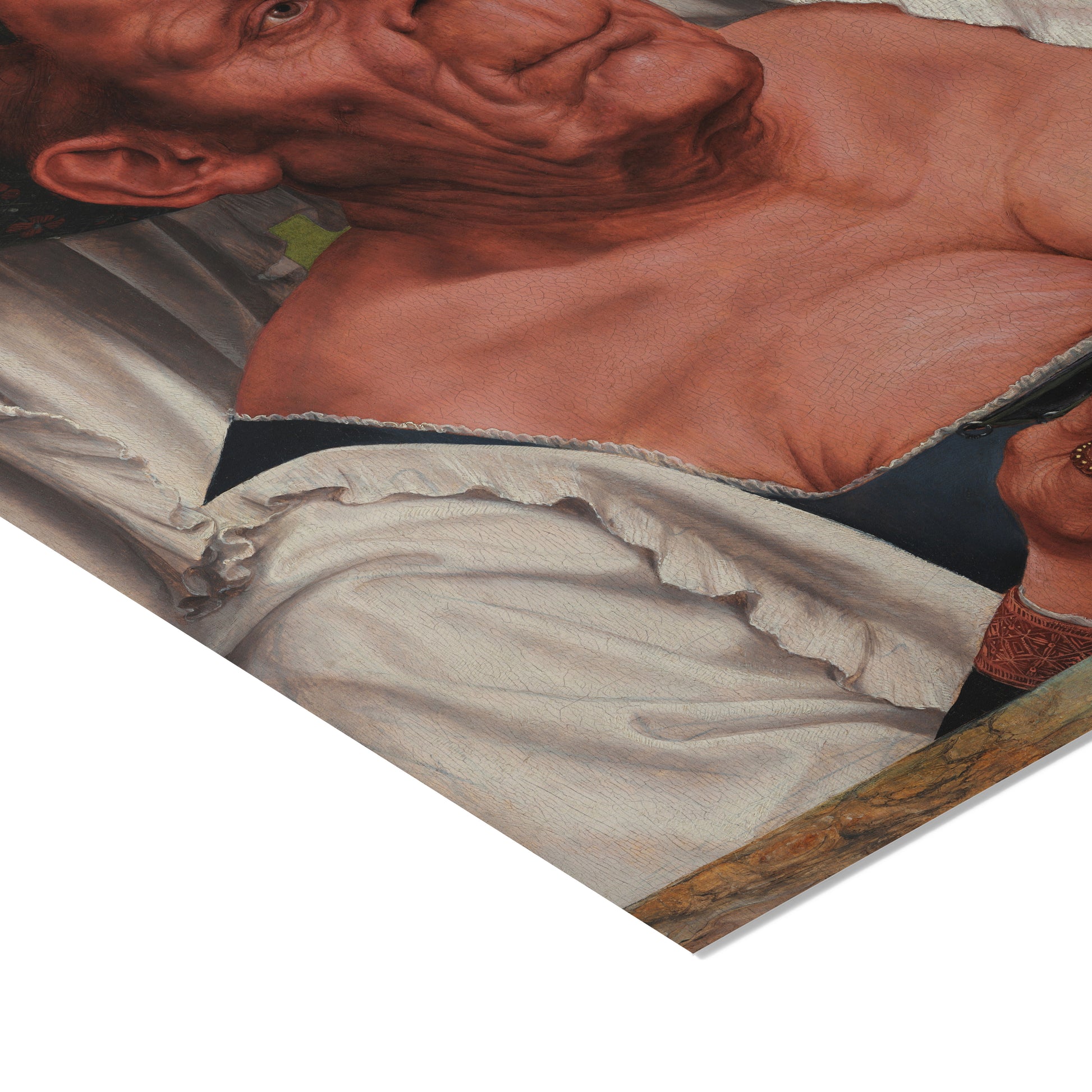 The Ugly Duchess (1513) by Quinten Matsys is one of the most striking and satirical portraits of the Northern Renaissance. The painting depicts an elderly woman with exaggerated, almost grotesque features—bulging forehead, wrinkled skin, and a distorted jawline—yet dressed in the finery of youth, with a low-cut bodice and elaborate headdress. This tension between age and vanity turns the portrait into both a biting moral commentary and a piece of dark humor, mocking the futility of clinging to lost beauty. Scholars suggest Matsys may have been inspired by Leonardo da Vinci’s caricature drawings, transforming grotesque physiognomy into moral allegory. Over the centuries, the work gained the nickname “The Ugly Duchess,” later influencing John Tenniel’s illustration of the Duchess in Lewis Carroll’s Alice’s Adventures in Wonderland. Beyond ridicule, however, the painting invites us to reflect on deeper themes of human folly, vanity, and the cruel passage of time, rendered with the technical precision of Flemish portraiture.