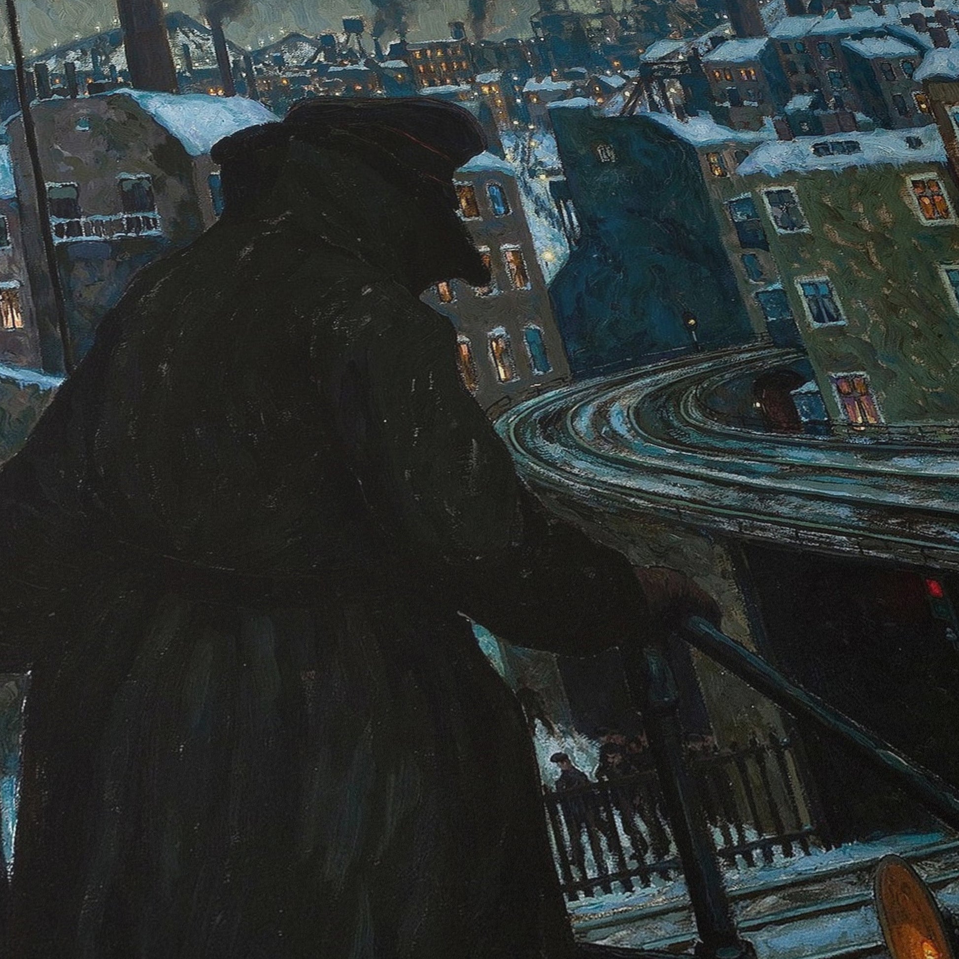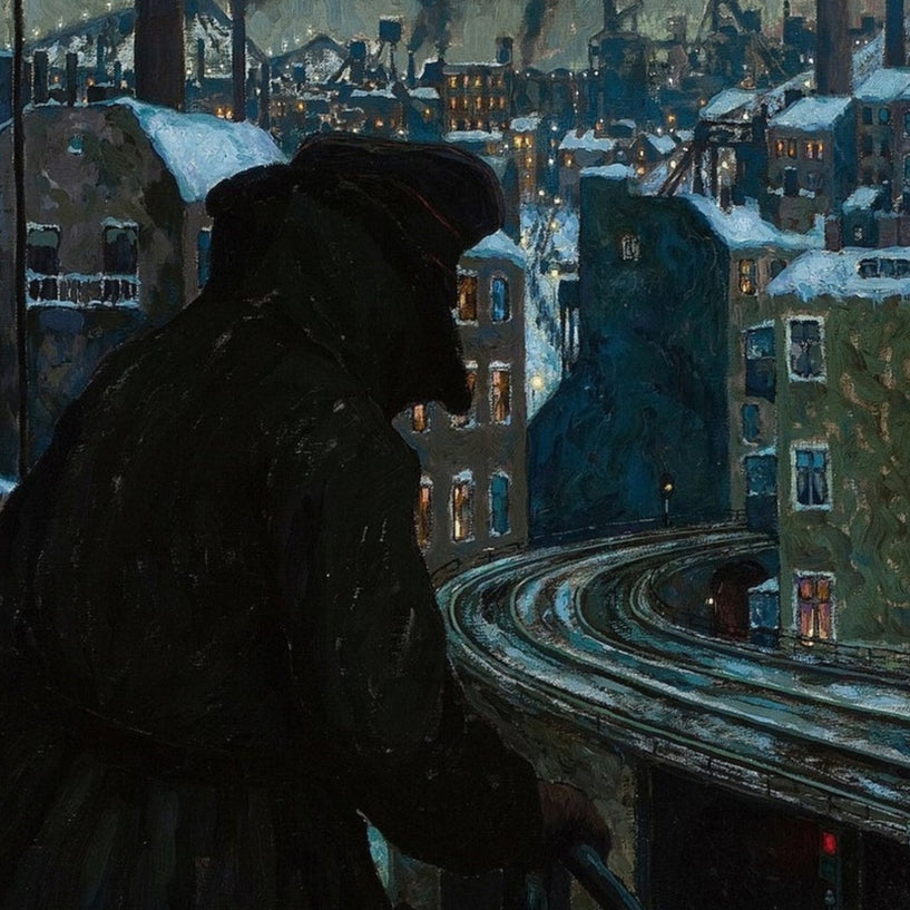 Working Class City (1920) by Hans Baluschek is a stark, almost oppressive vision of industrial modernity that reflects the harsh realities of post–World War I Germany. The painting shows endless rows of factory buildings and smokestacks under a heavy, gray sky, with no trace of natural beauty or human warmth. Baluschek, known for his socially conscious work, strips away any sense of romanticism, presenting the city as a machine that consumes both land and people. The absence of individuality—everything reduced to blocks, pipes, and chimneys—emphasizes alienation in the industrial age. Created during the turmoil of the Weimar Republic, the piece serves as both a social critique and a prophetic warning, capturing the bleak monotony of working-class existence in a mechanized, unforgiving world.